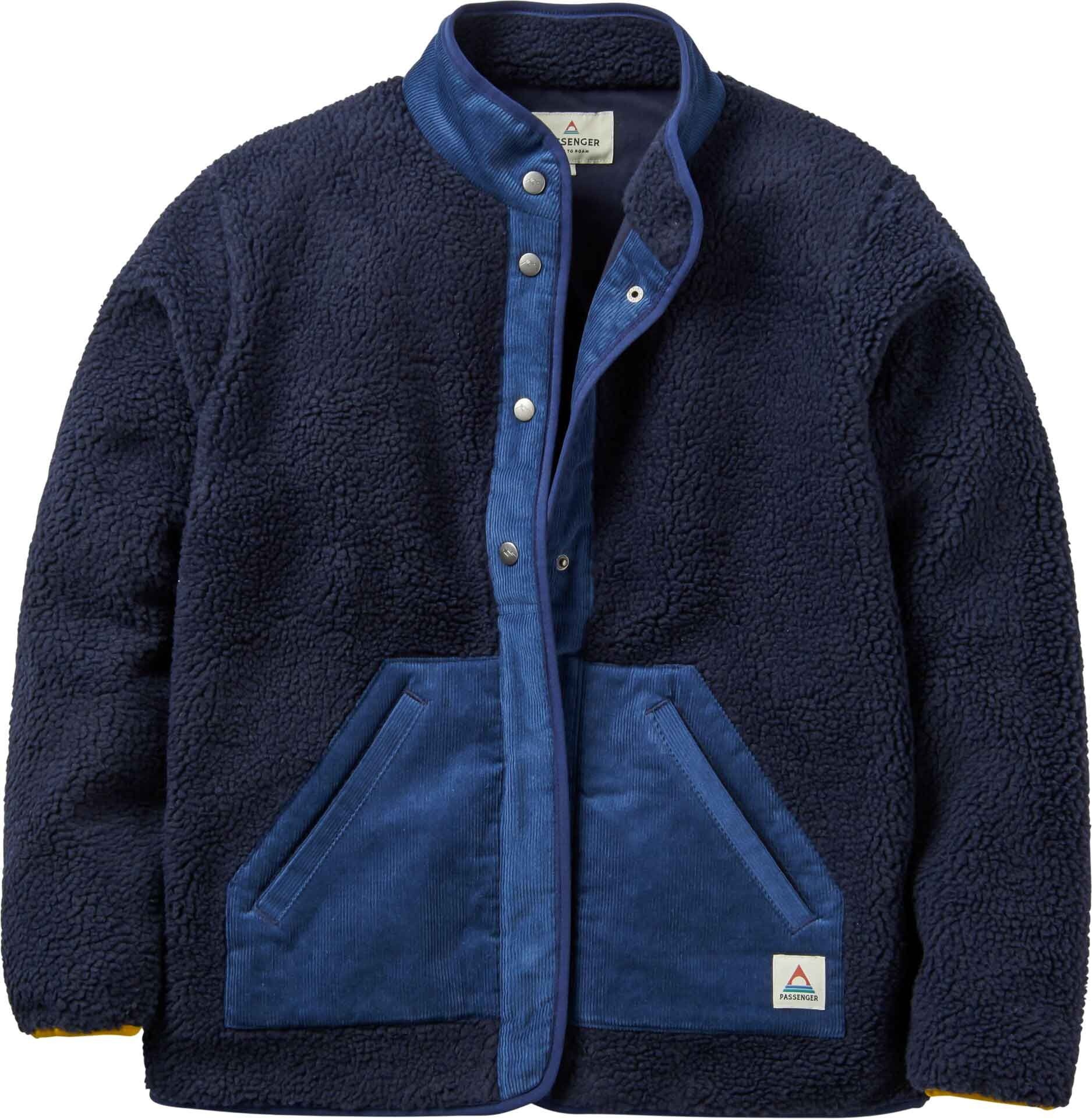 Passenger Clothing Clover 2.0 Recycled Sherpa Fleece Deep Navy, polaire femme en matière recyclée, isolante et douce coton, zippée boutonnée, pour rando, feu de camp ou van.