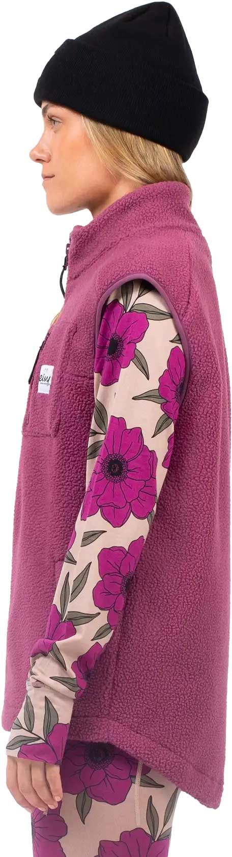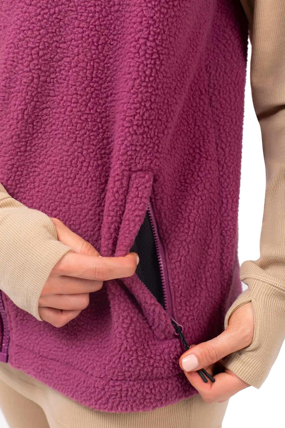 Gilet polaire sans manches Lumberjackie Sherpa Vest Pinkgundy Eivy pour femme, en sherpa ultra-doux, col montant isolant, trois poches zippées et ourlet arrière prolongé pour chaleur et protection en toute liberté.