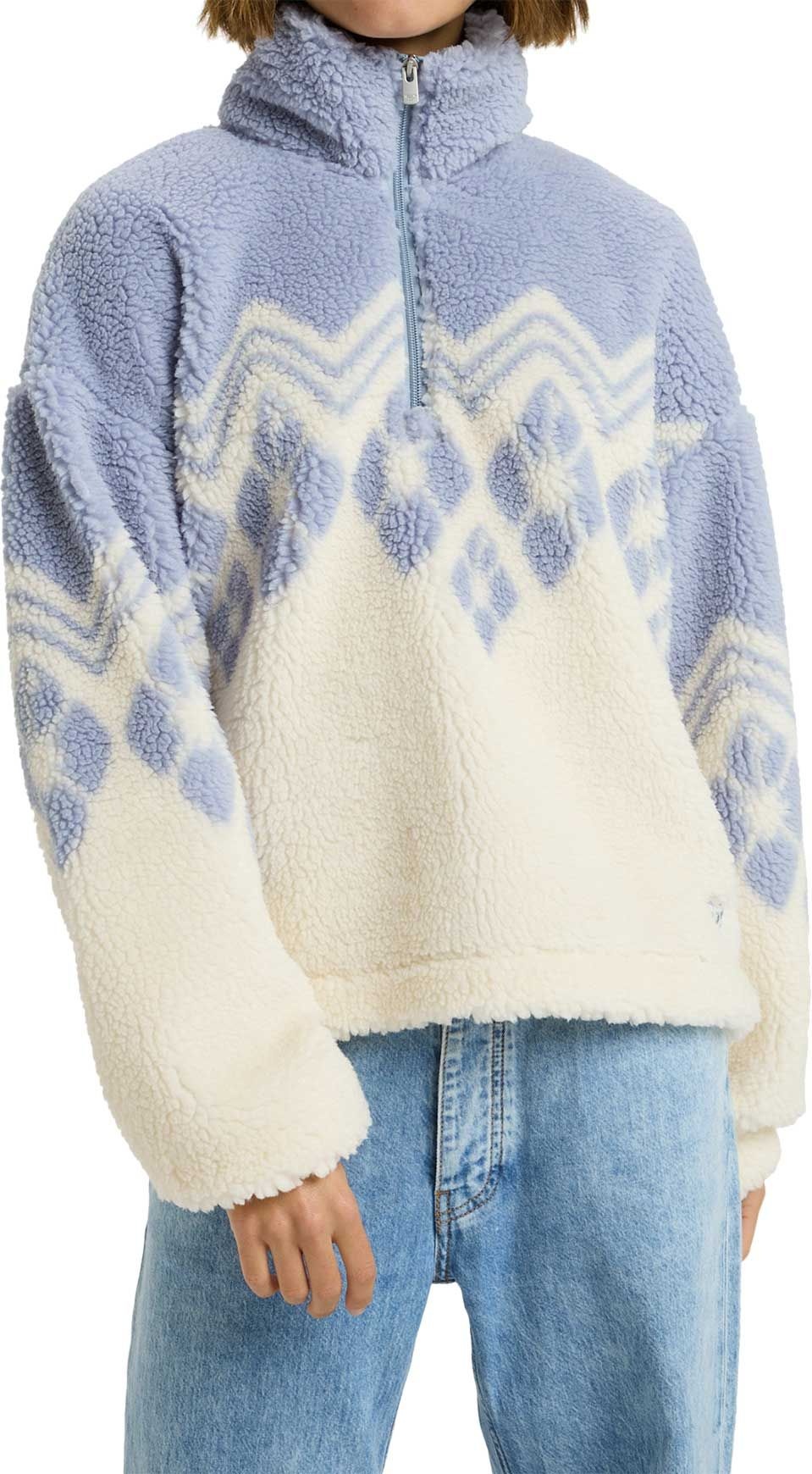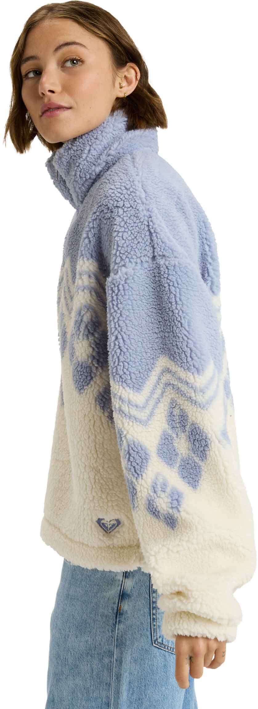 Polaire Roxy Mountain Story Bone White pour femme, douce et chaude avec manches longues et col zippé montant, coupe tombante pour usage mi-saison ou détente.