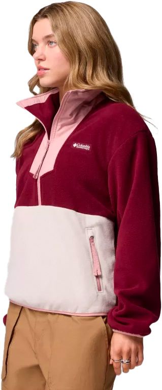 Columbia Sequoia Grove 1/2 Zip Fleece est une polaire femme demi-zippée au style rétro coloré, qui bloque l’air par biais stretch aux poignets et à l’ourlet et réchauffe les mains dans ses poches latérales zippées.