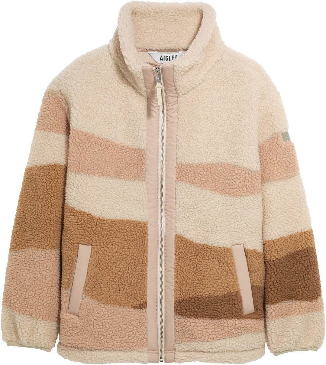 Aigle Sherpa Fleece Sable Jq polaire femme en polaire ultra-douce, col montant coupe-vent, 2 poches contrastées et lien de serrage à l’ourlet pour un ajustement personnalisé.