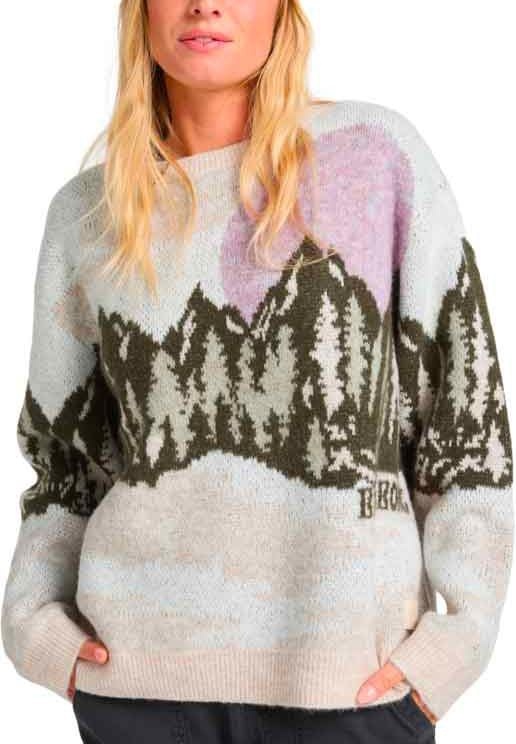 Pull Billabong Camp Sweater Multico femme en jacquard chaud, doux et durable, motif unique, coupe décontractée et finitions bords-côtes pour un style cocooning tendance au quotidien.