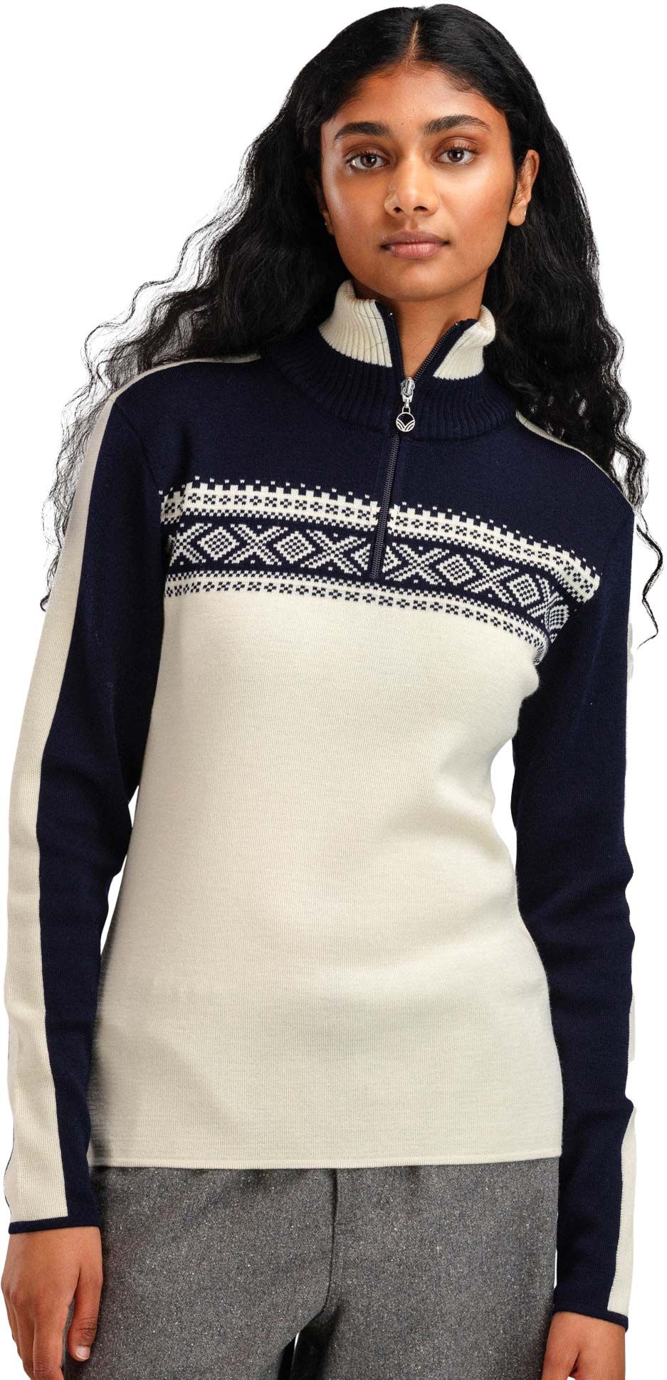 Dale of Norway Dystingen Sweater femme en laine mérinos offre chaleur naturelle, régulation thermique et col zippé inspiré des traditions scandinaves.
