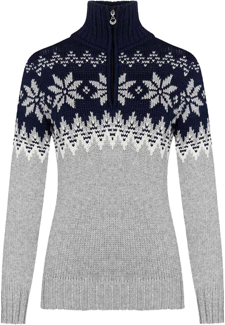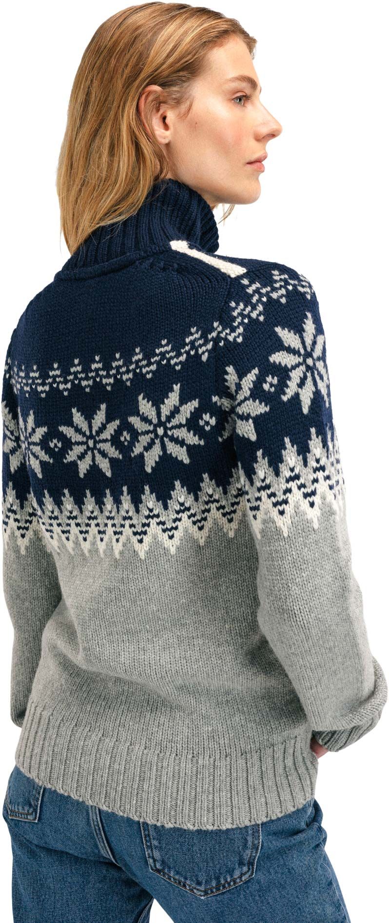 Pull Dale of Norway Myking Sweater femme en laine mérinos, col montant demi-zip et motifs norvégiens : chaleur naturelle, respirabilité et élégance scandinave.