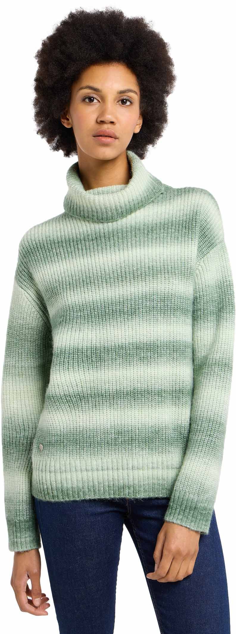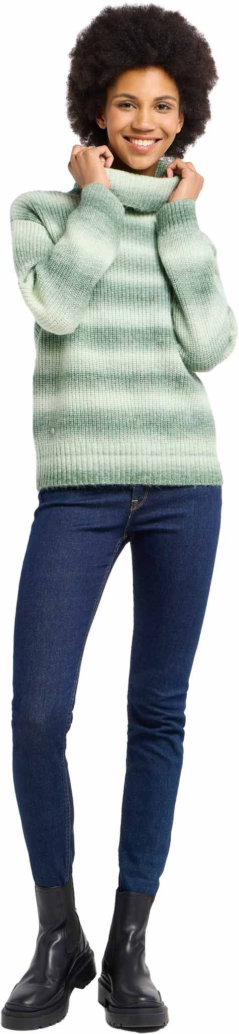 Pull à col roulé Safina Dusty Green Ragwear, chaud et élégant, col large, rayures chic, confort hivernal.
