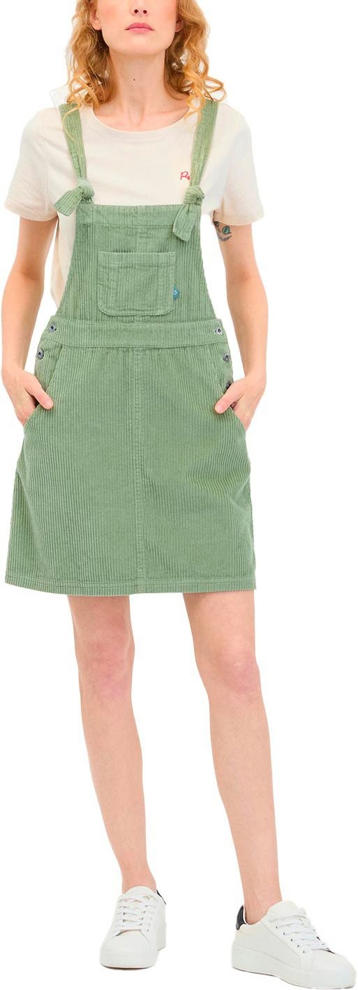 Robe salopette Ragwear Zekke Cordy Dusty Green en velours côtelé, coupe travaillée, bretelles nouées devant, poches latérales, patte de boutonnage latérale, style décontracté et féminin.