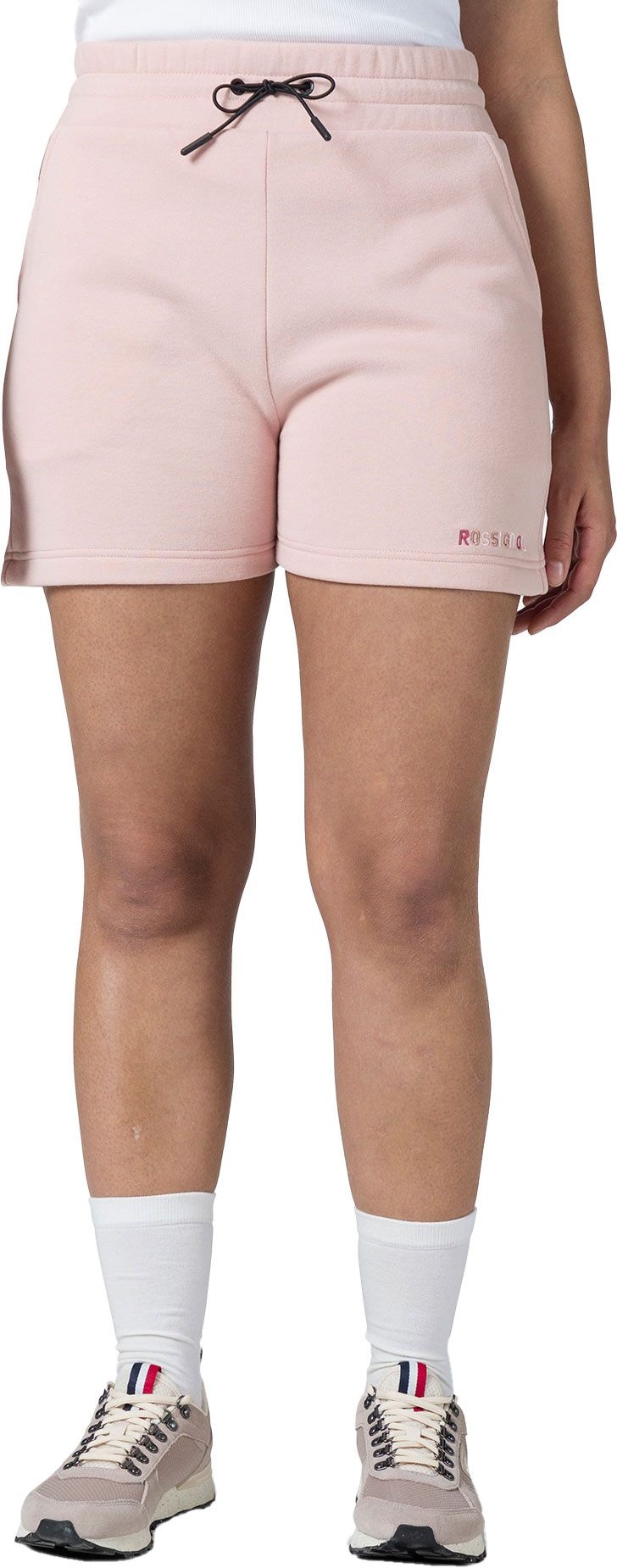 Short Rossignol Embroidery Powder Pink pour femme, en coton doux avec cordon de serrage et logo brodé pour un style décontracté esprit montagne.