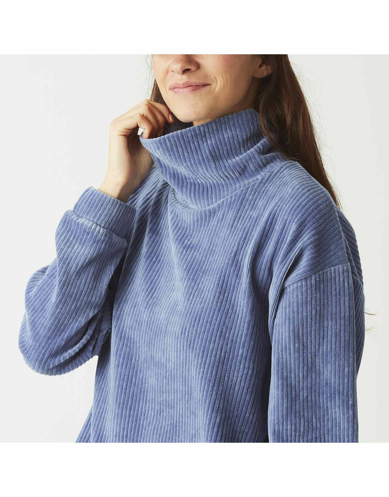 Sweat Laikko Crew Stonewash femme Picture Organic Clothing, effet velours côtelé, col haut et finitions côtelées pour chaleur et ajustement. Coupe ample, design minimaliste et logo brodé.