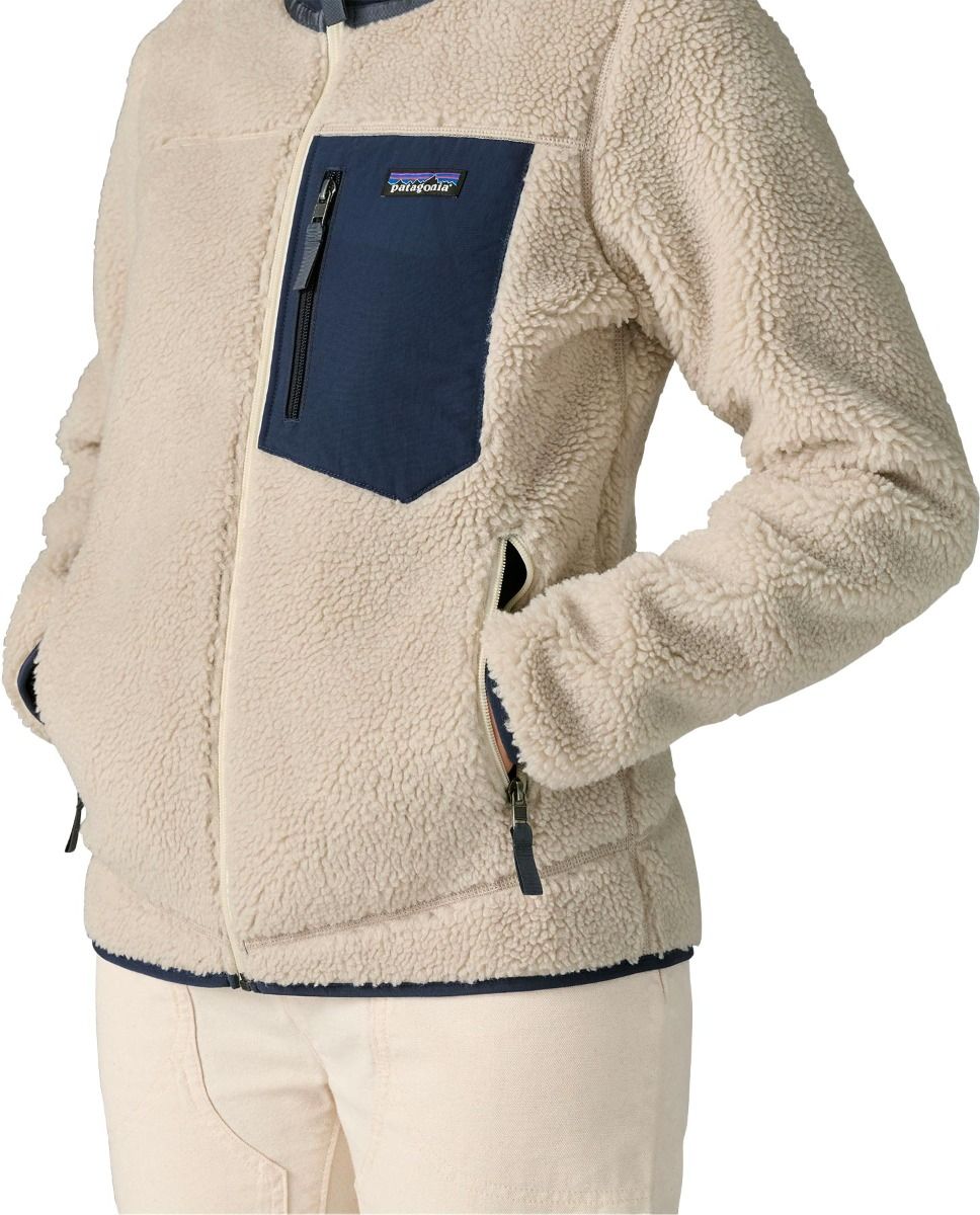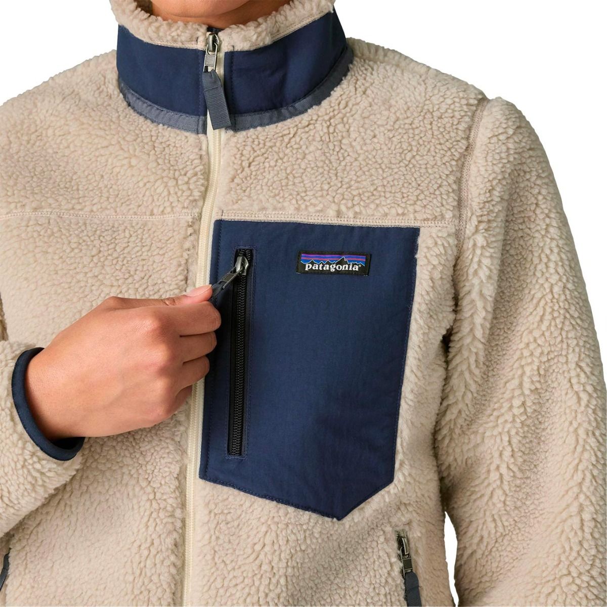 Pol Patagonia Retro-X Dark Natural w/Night Plum femme, polaire chaude coupe-vent en sherpa laminée, respirante grâce à sa doublure mesh, fermeture intégrale et poches zippées.