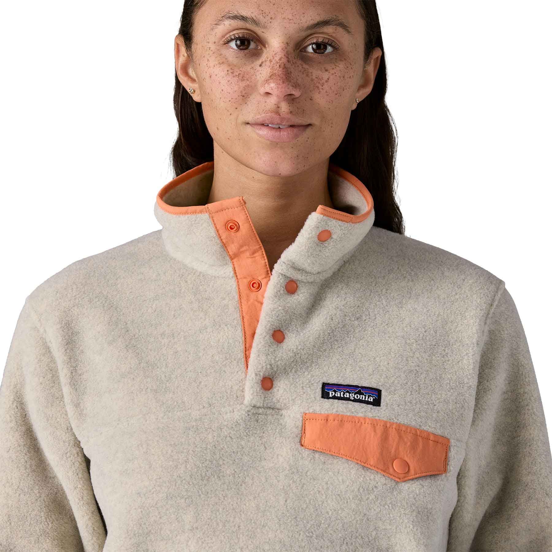 La polaire Patagonia LW Synch Snap-T P/O Wild Botanist Tidal Teal femme allie chaleur, confort et look vintage grâce à sa polaire recyclée, son col montant boutonné et sa poche poitrine à rabat.