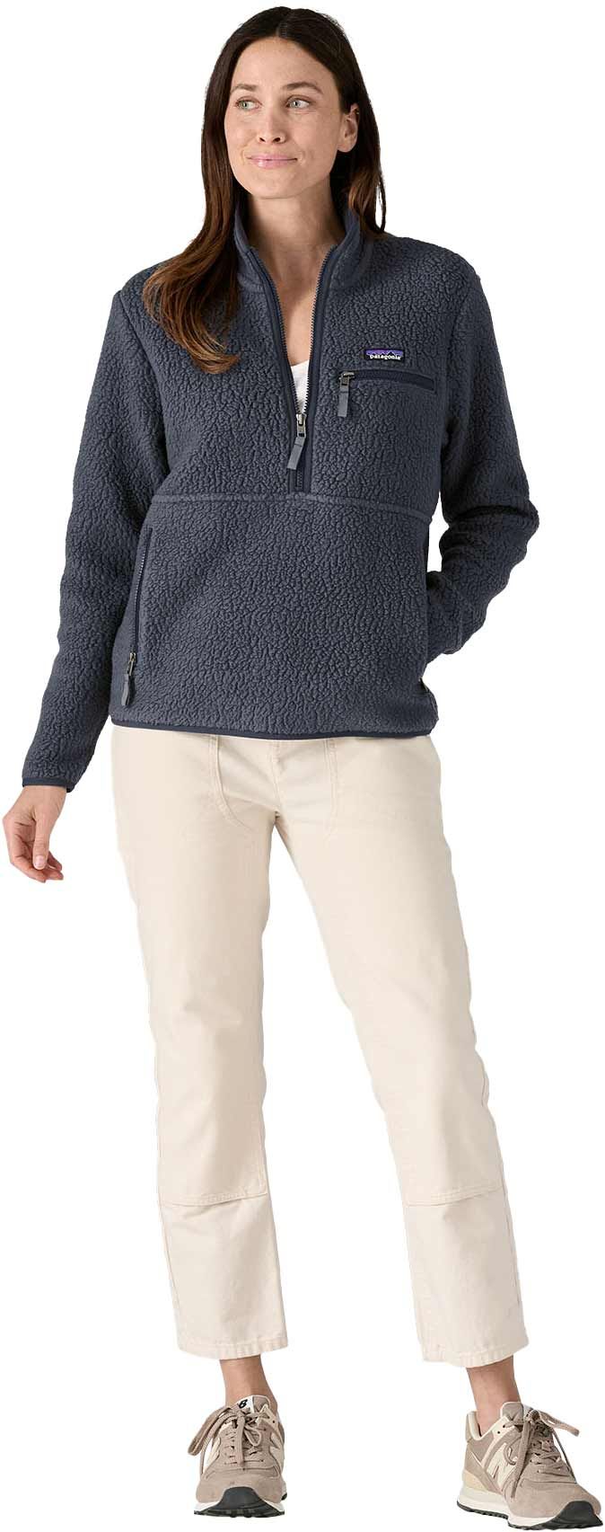 La Retro Pile Marsupial Natural de Patagonia est une polaire légère et chaude pour femme, douce au toucher avec coutures plates pour éviter les frottements. Son demi-zip rétro, bordures élasthanne résistantes et coutures d’épaule décalées assurent confort et durabilité en randonnée ou au quotidien.