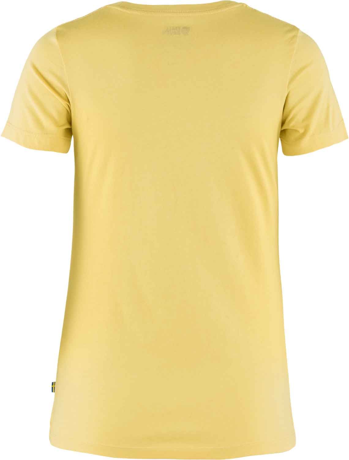 Le t-shirt Arctic Fox Mais Yellow femme Fjällräven, en coton biologique, offre col rond et manches courtes pour un confort naturel en balade ou en ville, sublimé par un motif original.