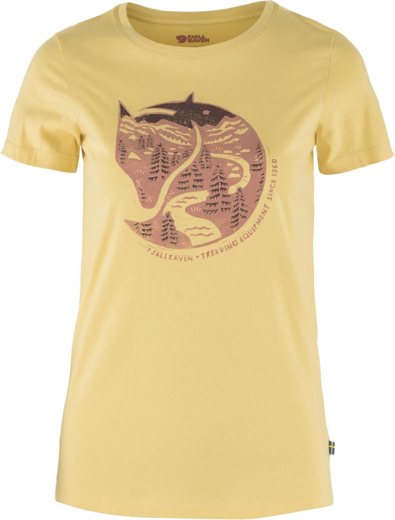 Arctic Fox Mais Yellow pour femme de la marque Fjällräven est un t-shirt classique conçu en coton biologique. Avec son col rond et ses manches courtes, ce modèle convient aussi bien pour vos marches dominicales que pour vos balades urbaines. Avec son motif original imprimé sur le devant, il saura se faire remarquer !