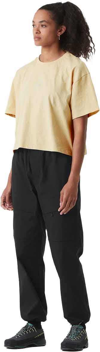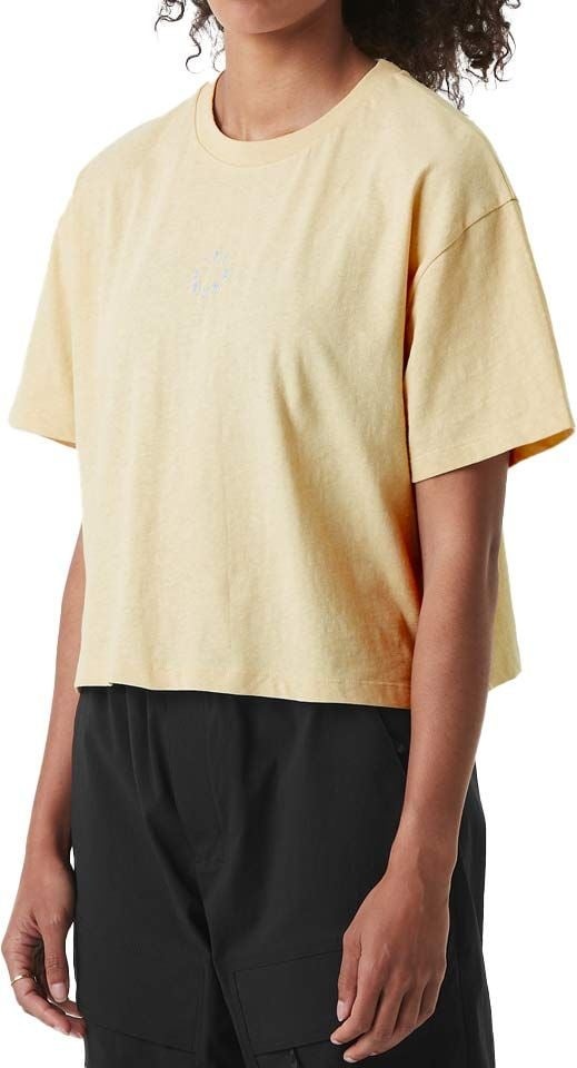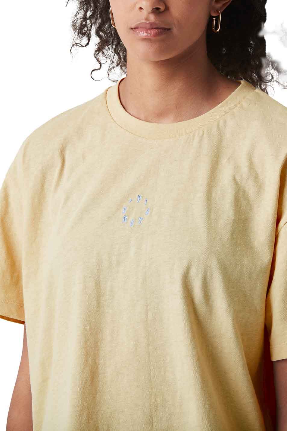 T-shirt femme Picture Organic Clothing Hampy Coral Pink en coton-lin, coupe boxy décontractée pour un look estival au soleil.