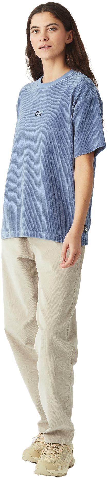 T-shirt femme Picture Organic Clothing Laikko Velours Tee Stonewash en coton biologique, coupe ample et touché velours pour douceur et confort au quotidien.