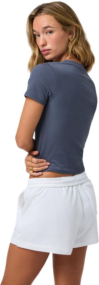 Le t-shirt ajusté Pose Fitted Tee Azure pour femme est réalisé dans un tissu modal premium qui conjugue souplesse, élasticité et résistance. Grâce à son tricot côtelé extensible, votre silhouette est parfaitement mise en valeur tout en bénéficiant d’une amplitude de mouvement optimale. Sa coupe courte pratique et son col ras du cou raffiné en font une pièce facile à superposer, aussi bien à domicile qu’à l’extérieur. Cette pièce versatile s’inscrit dans une esthétique contemporaine et pérenne.