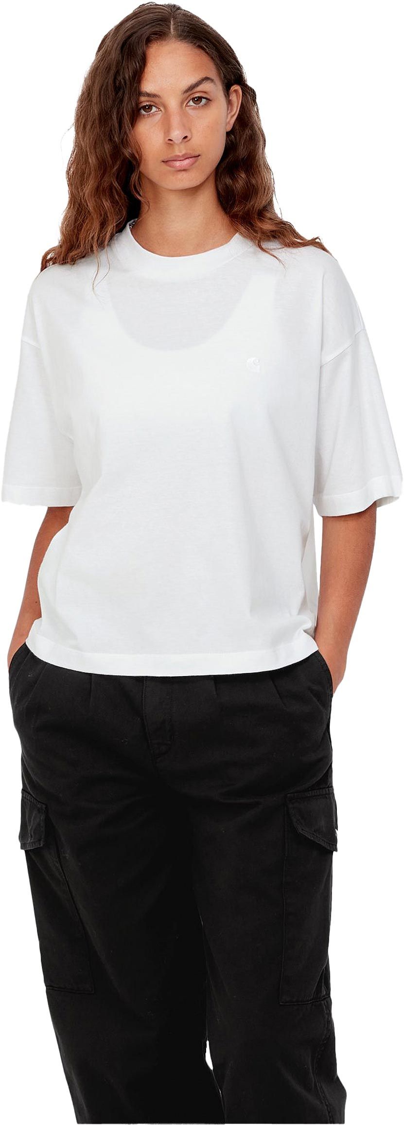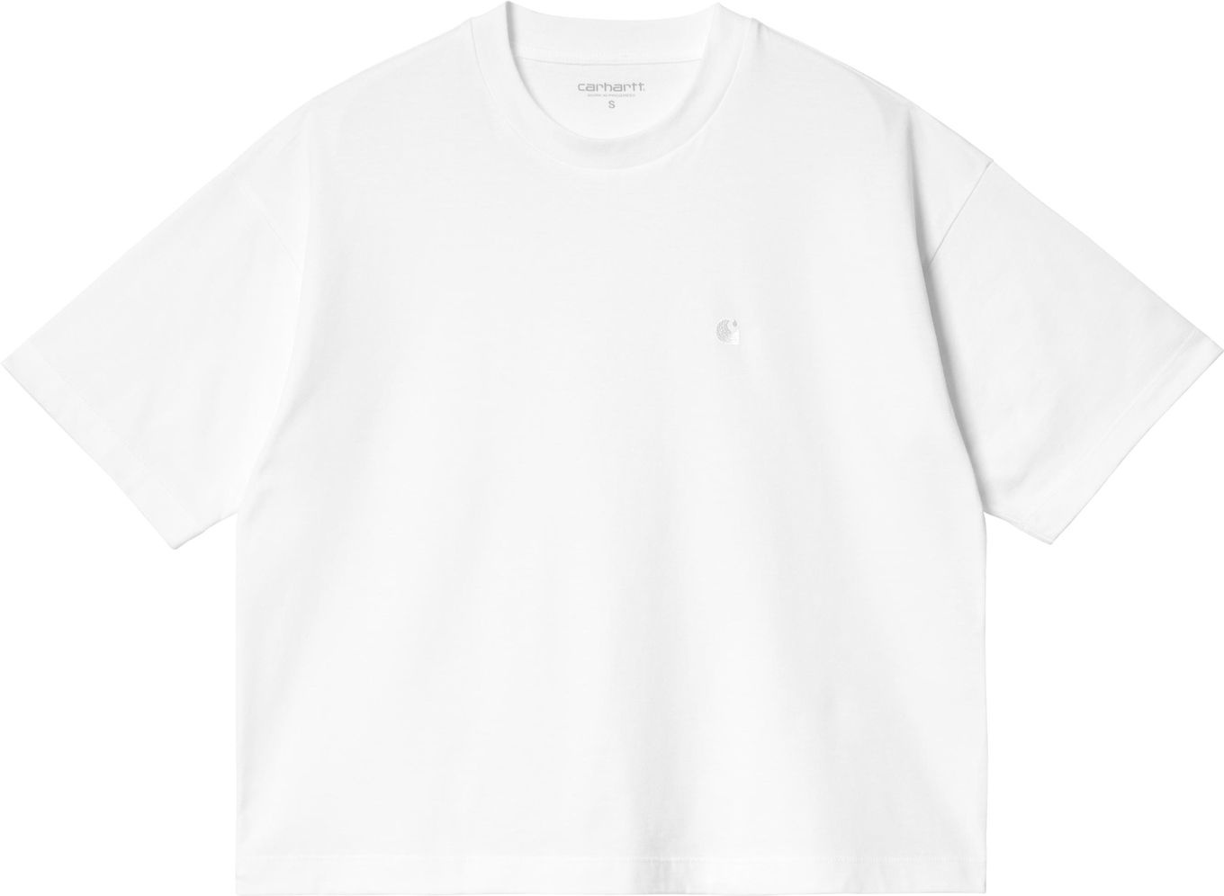 Carhartt WIP S/S Chelster T-Shirt White : t-shirt femme en coton organique, logo poitrine, coupe classique pour un confort quotidien avec chino ou jean.