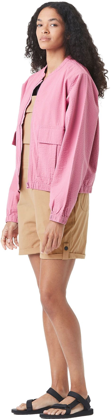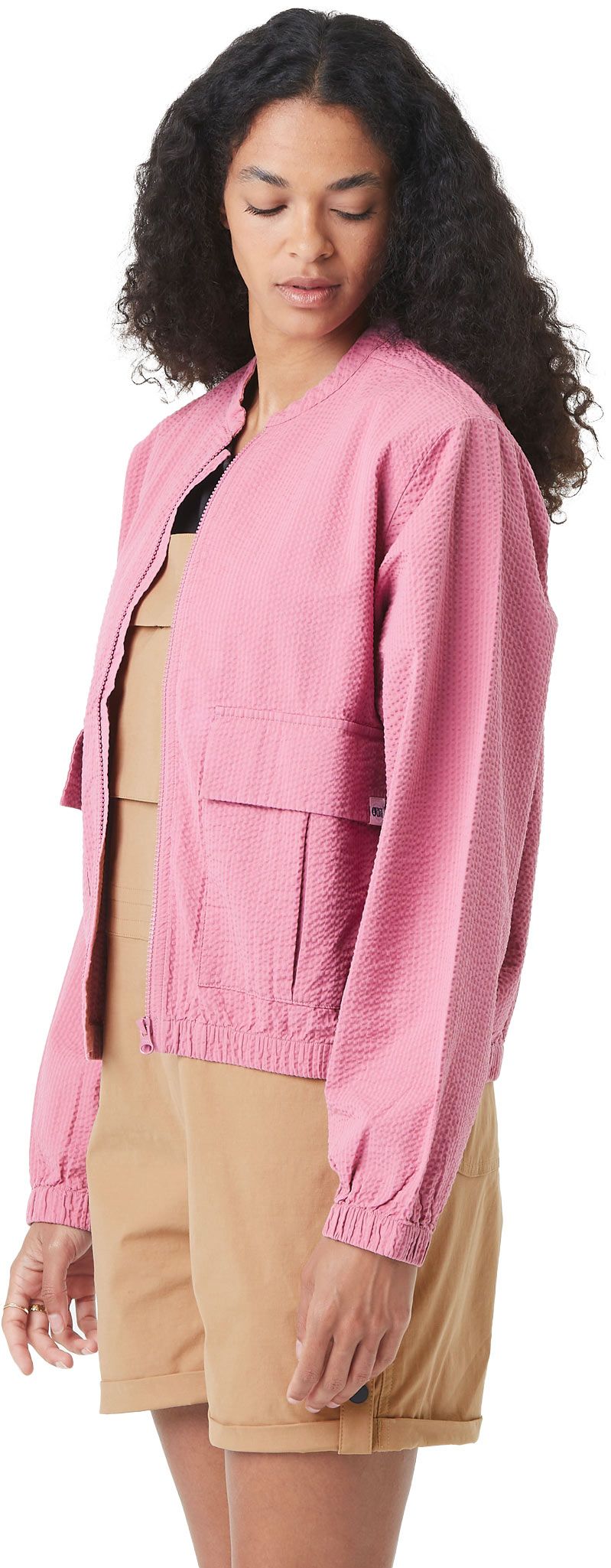 Veste bomber femme Picture Serenata Mauve Orchid, coupe classique revisitée avec manches et ourlet élastiqués, fermeture zippée et poches plaquées pour un style chic et décontracté au printemps-été.