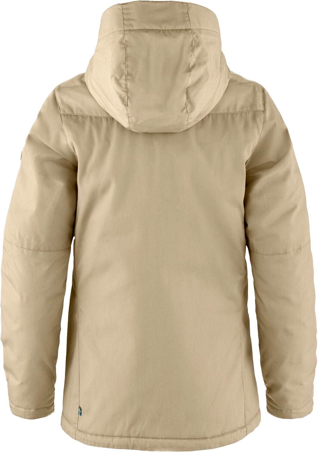 Cette veste matelassée féminine s’inspire de la célèbre Stina Padded Jacket Fossil de Fjällräven, mariant esthétique classique et technologies actuelles. Sa fabrication combine du G-1000 et du G-1000 Lite, composés de polyester recyclé et de coton biologique, avec un rembourrage PrimaLoft® Black RISE à fort pouvoir gonflant élaboré via la technologie durable PURE. L’isolation optimale contre le froid et le vent est complétée par une capuche, un ourlet et des poignets ajustables pour un confort personnalisé. La coupe, longueur hanches, garantit à la fois une protection efficace et une amplitude de mouvements satisfaisante. Le rangement des indispensables se fait dans deux poches zippées mains plus une poche intérieure poitrine. Résistante aux intempéries et au vent, cette pièce durable accepte une couche de cire Greenland Wax pour renforcer ses propriétés protectrices.