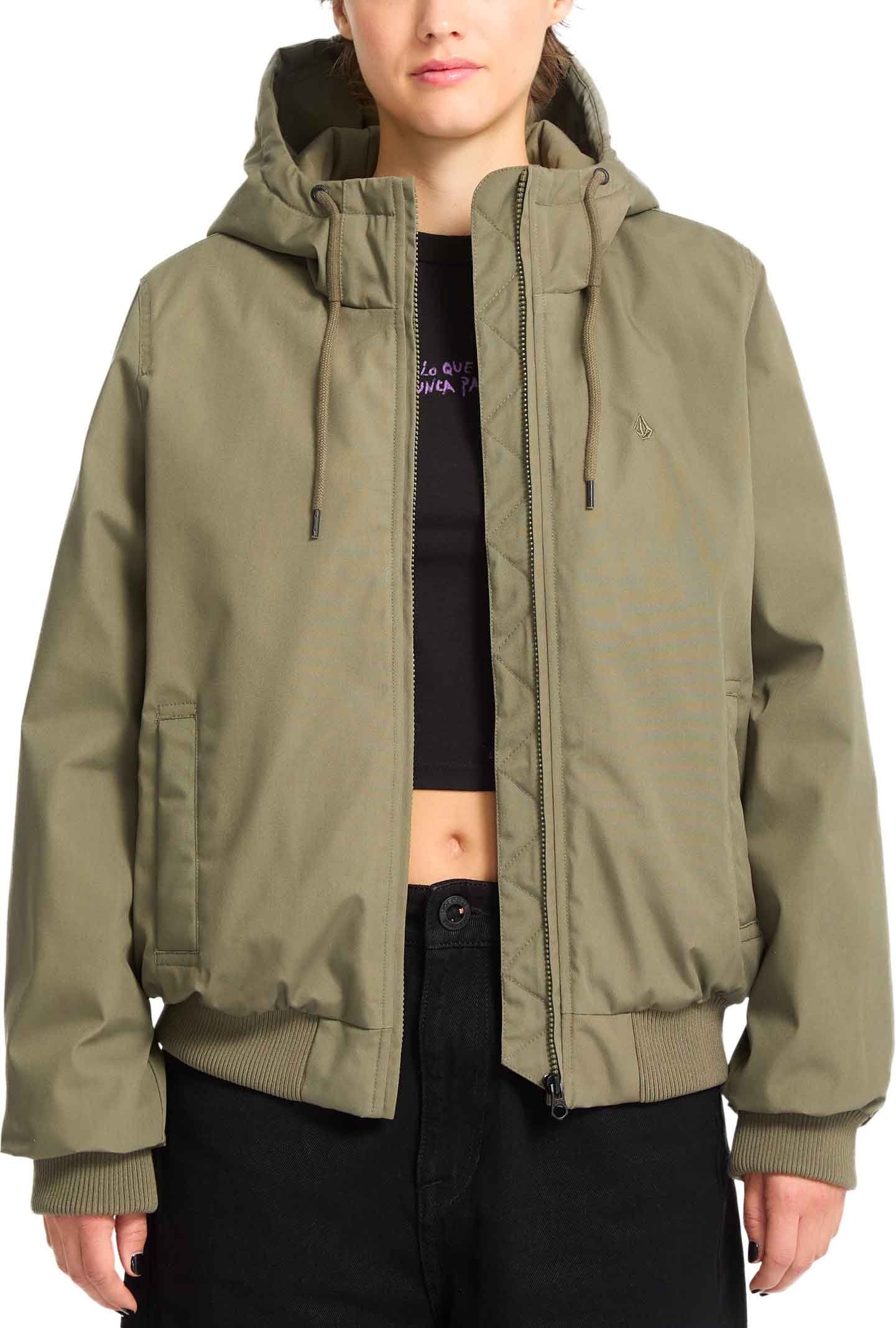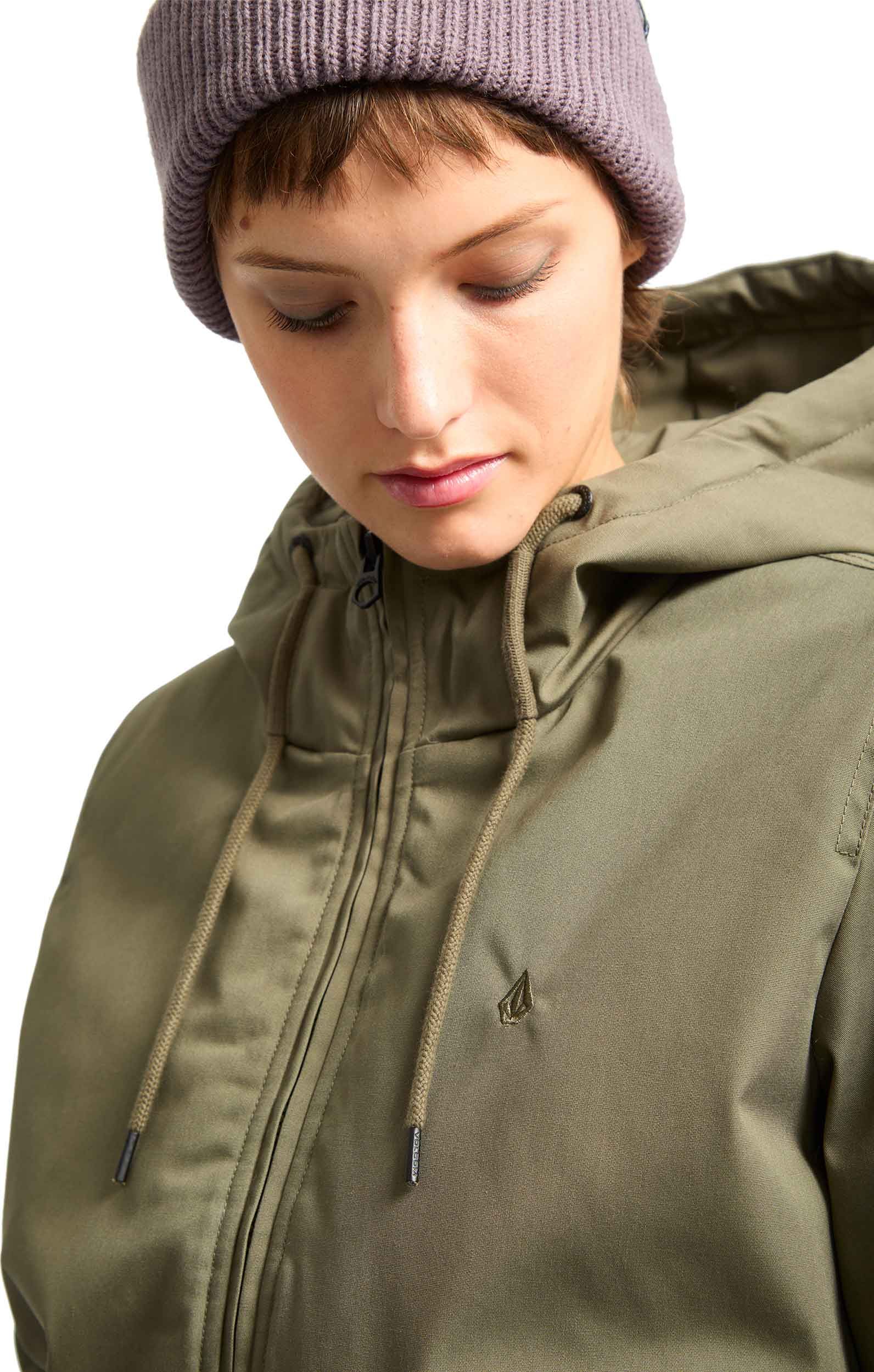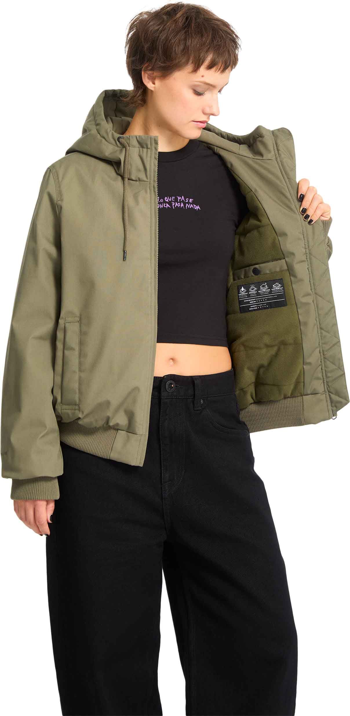 La veste courte Werman 10K Jacket Wintermoss Volcom pour femme résiste à la pluie automnale grâce à son tissu déperlant, sa capuche ajustable, sa doublure tricot brossé et son rembourrage isolant.