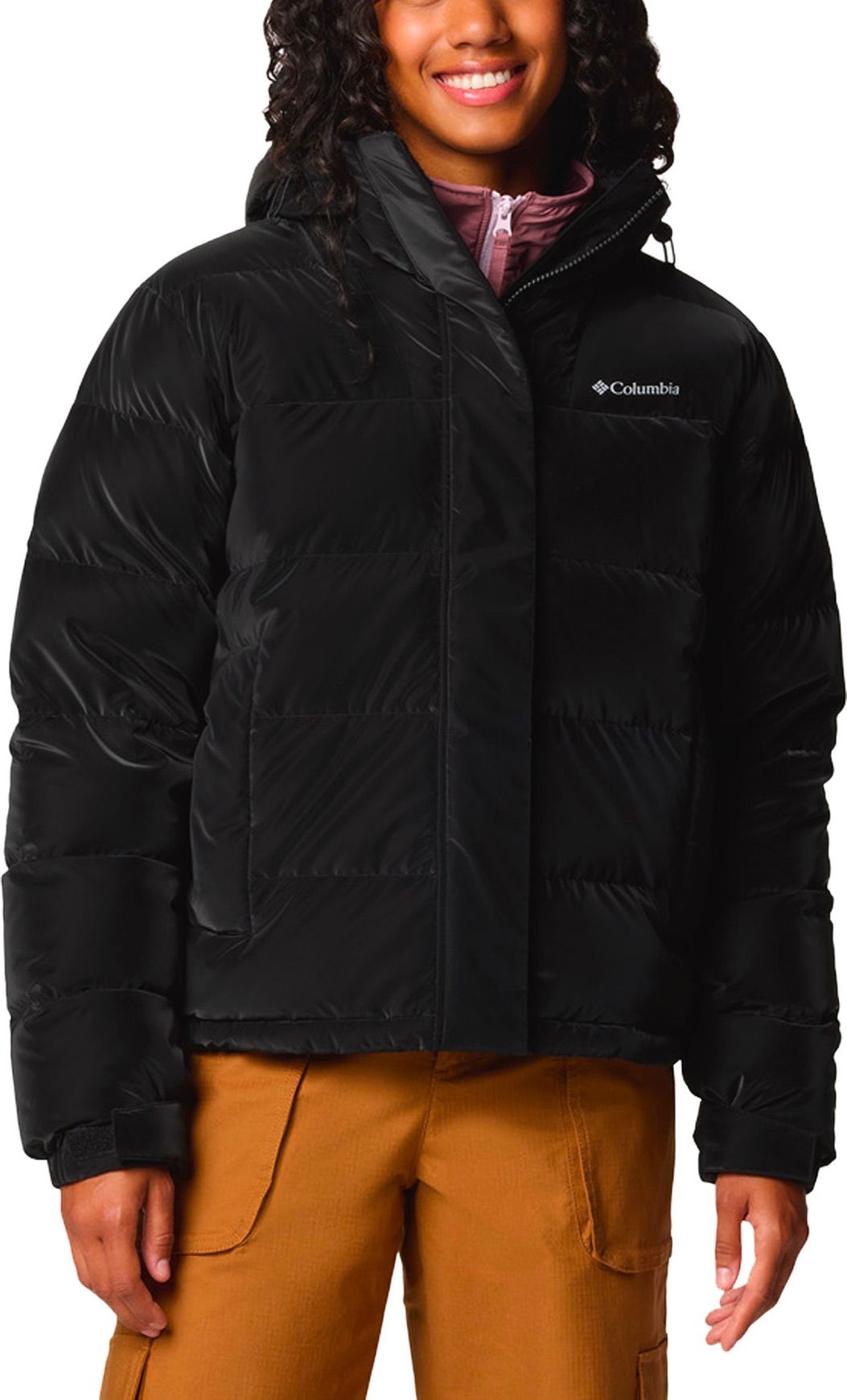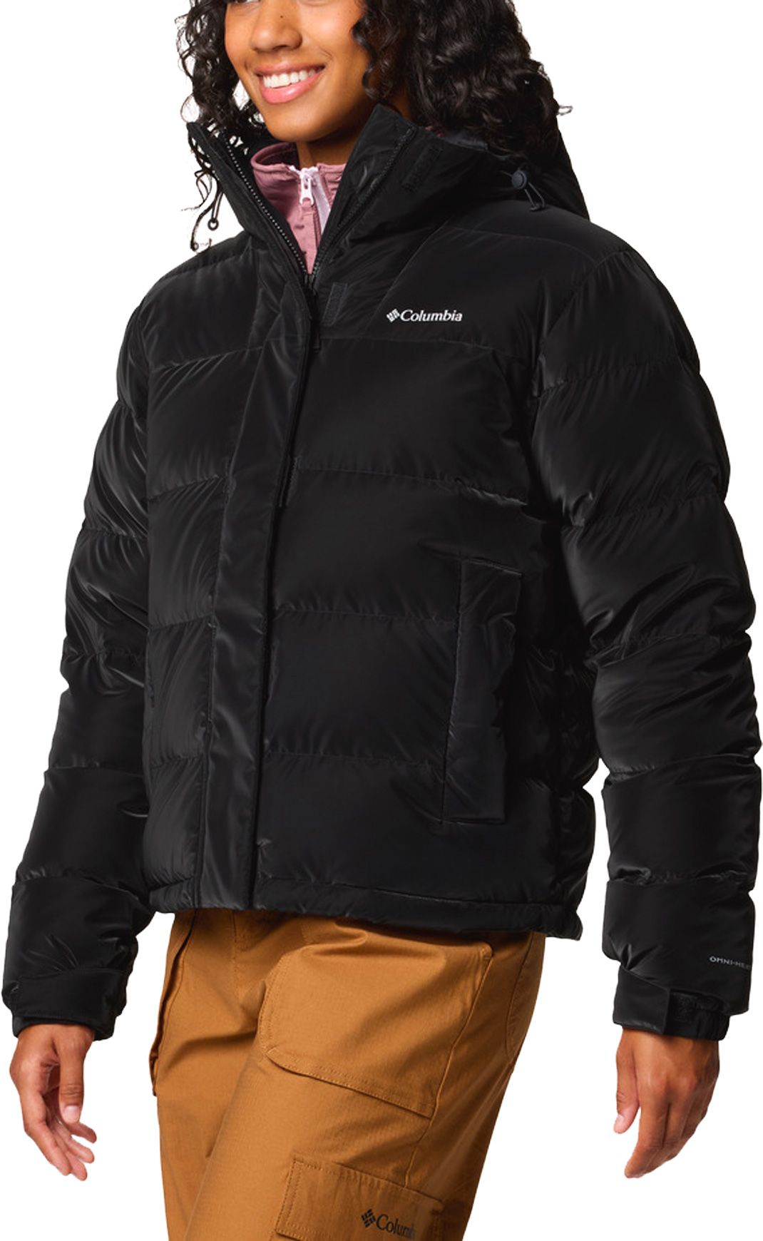 Doudoune Columbia Bulo Point™ III Down Black Velvet Sheen femme, isolée en duvet 700 Cuin et doublure thermo-réfléchissante Omni-Heat™ pour une chaleur maximale en ville. Traitement Omni-Shield™ anti-pluie, col montant, poignets réglables et poches zippées.