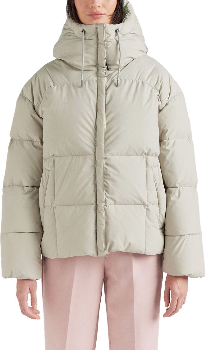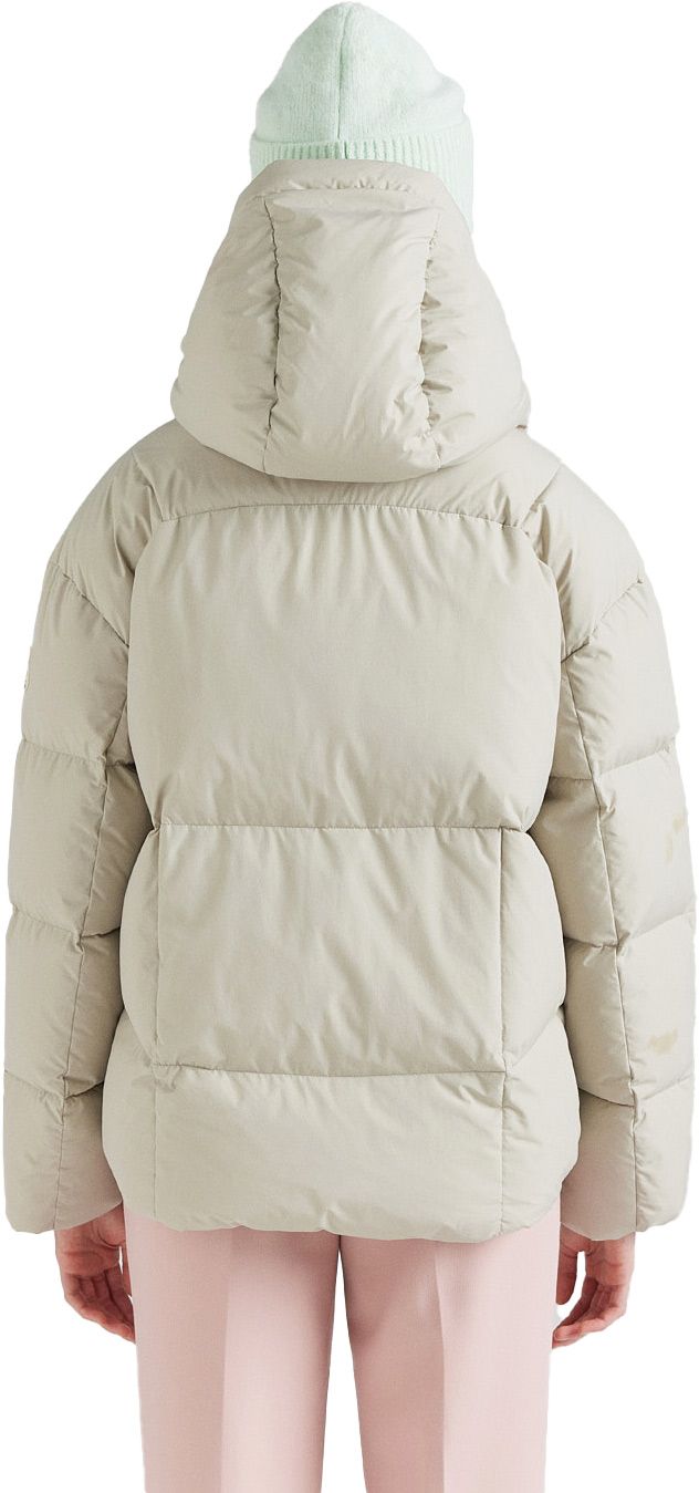 Des cordons de serrage sur la capuche, directement inspirés de l’univers montagnard, lui confèrent une allure sportswear affirmée. La coupe, à la fois épurée et harmonieuse, offre un volume arrondi maîtrisé sans excès de bouffant. Un assemblage soigné au niveau des épaules vient adoucir la ligne générale, permettant d’exprimer son style avec féminité.
