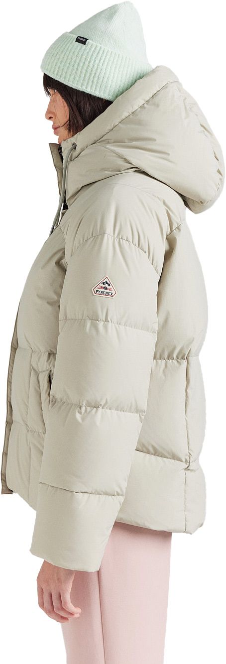 La doudoune Harmonie 3 Willow Grey de Pyrenex, forme boule enveloppante en duvet naturel, allie chaleur, légèreté et protection hivernale grâce à son tissu imperméable, déperlant et coupe-vent.