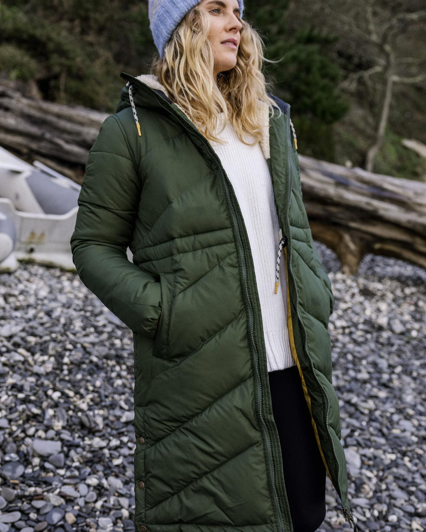 Côté praticité, des poches avant généreuses permettent de ranger vos essentiels quotidiens, tandis qu’une poche poitrine zippée sécurise vos objets précieux. La coupe ample privilégie le confort et la liberté de mouvement, facilitant le superposition des couches (pour un ajustement plus près du corps, une taille en dessous est recommandée). Les poignets et l’ourlet côtelés contribuent à retenir la chaleur corporelle tout en bloquant l’air froid, ce qui rend cette veste parfaitement adaptée aux soirées fraîches autour d’un feu de camp comme aux matinées ventées en bord de mer.
