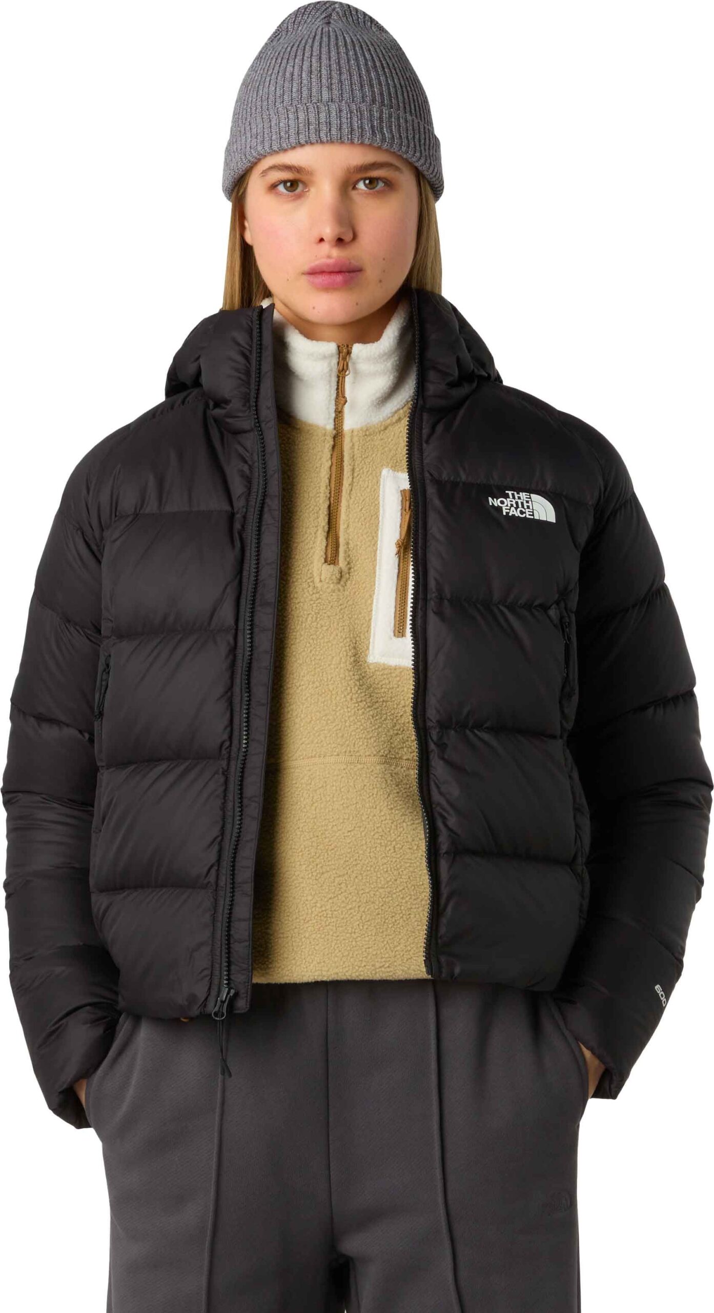 The North Face Hyalite Down Hoodie TNF Black est une doudoune femme courte en duvet d’oie à fort pouvoir gonflant, offrant chaleur, coupe standard ajustée et style urbain ou de sentier.