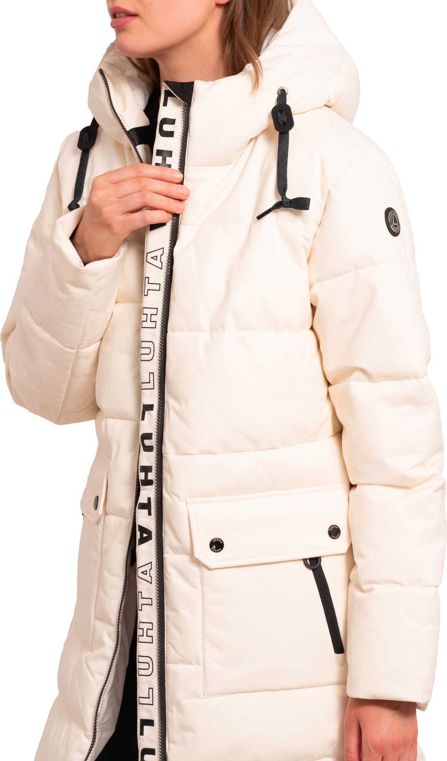 Doudoune Luhta Espingen Blanc Cassé pour femme, coupe-vent et imperméable, isolée en duvet synthétique pour une protection hivernale fiable.