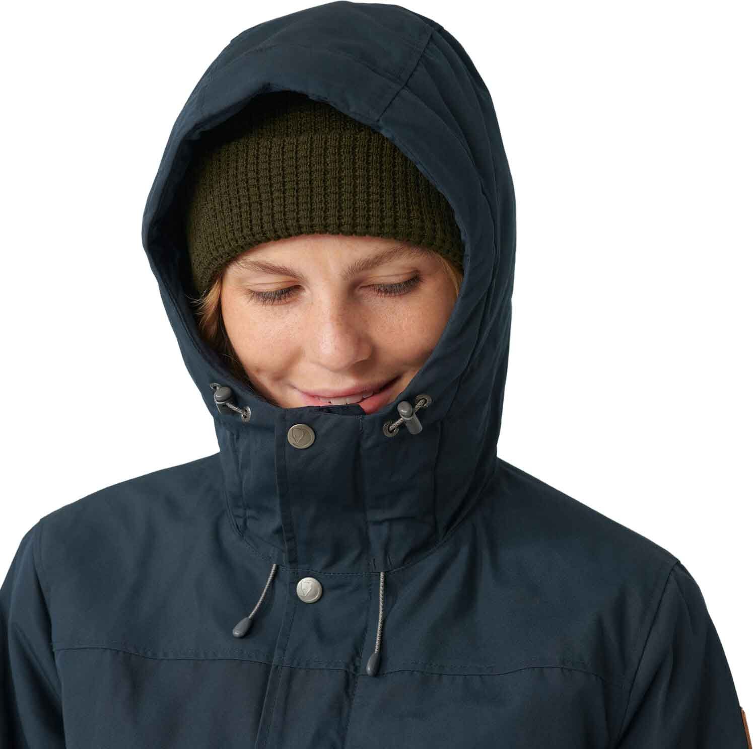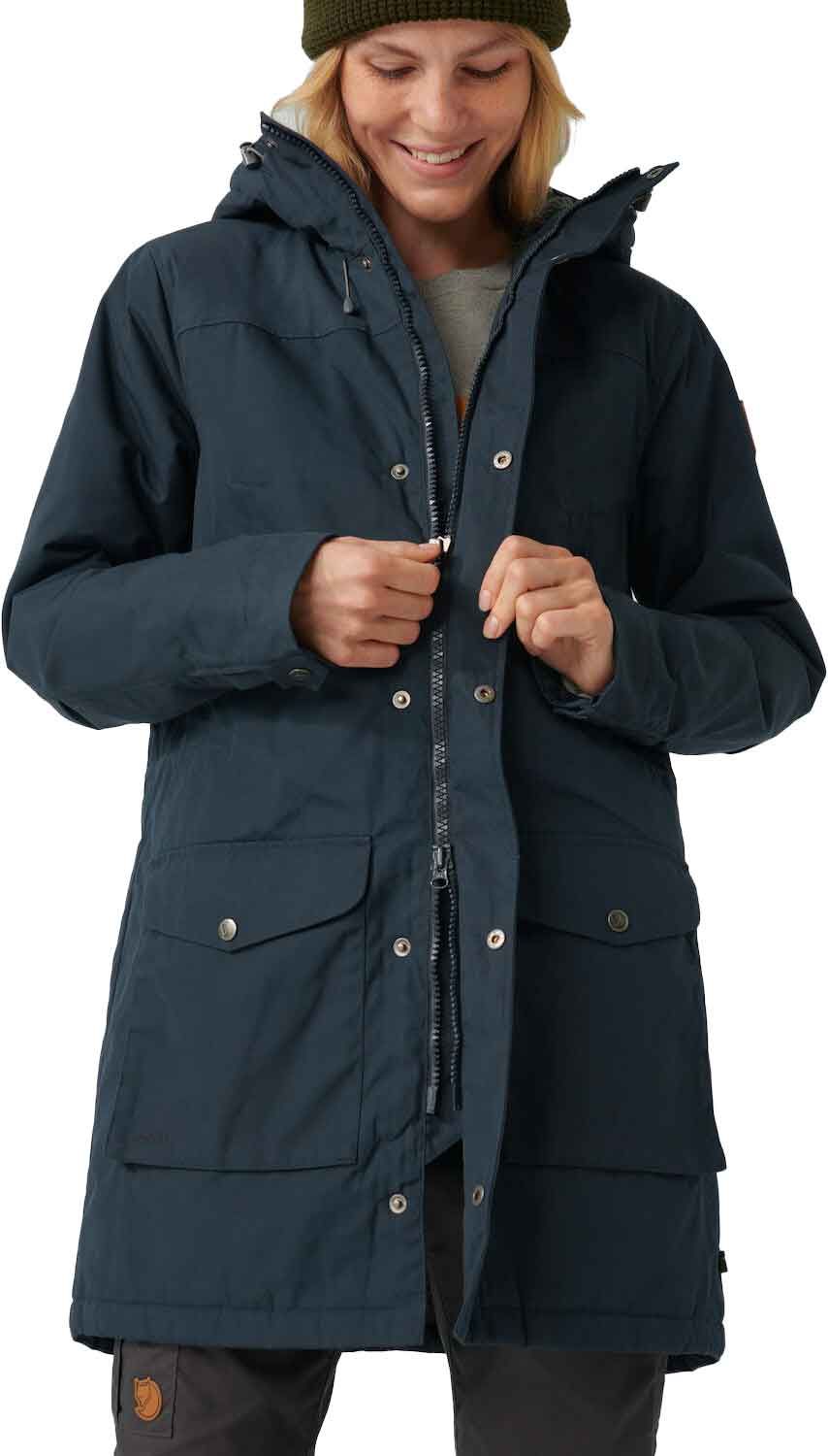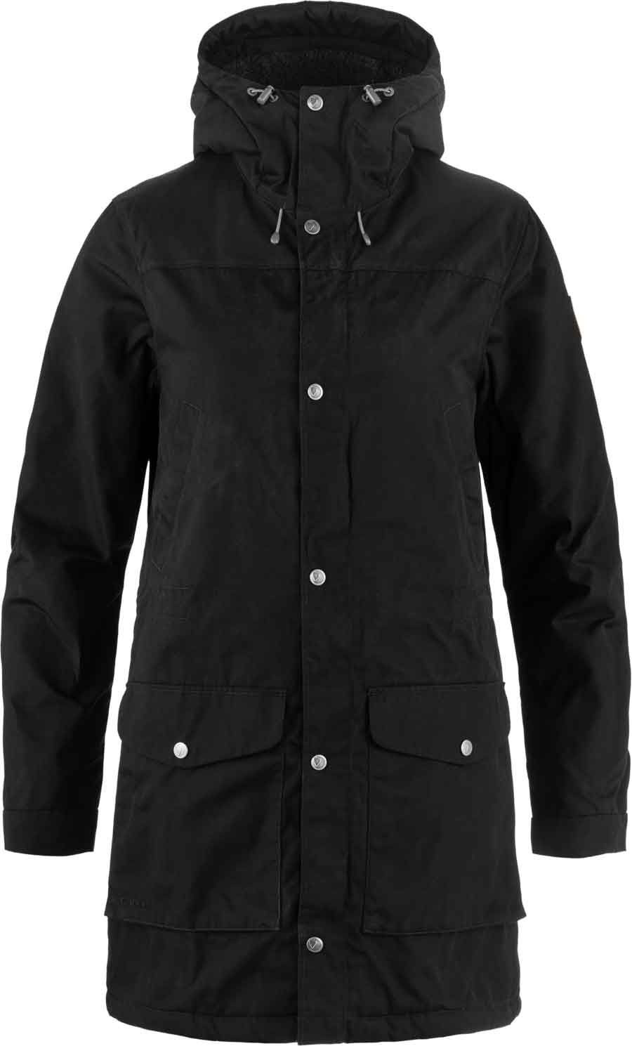 Parka Fjällräven Greenland Winter Black femme en G-1000® Eco, coupe mi-longue, doublure Supreme Microloft et polaire, capuche réglable, poches chauffe-mains, coupe ample.