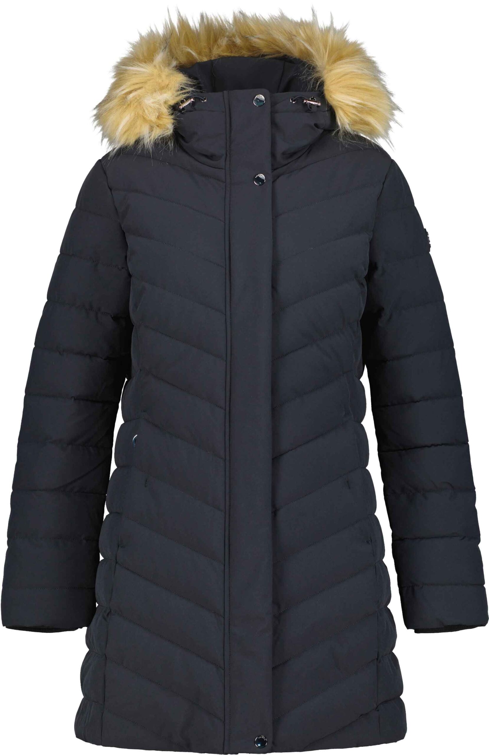 Parka femme Luhta Haukkala Bleu Fonce, tissu extérieur résistant à l’eau et isolation duvets-like pour chaleur légère. Fermetures latérales zippées, capuche et fourrure amovibles, multiples poches sécurisées, poignets côtelés.