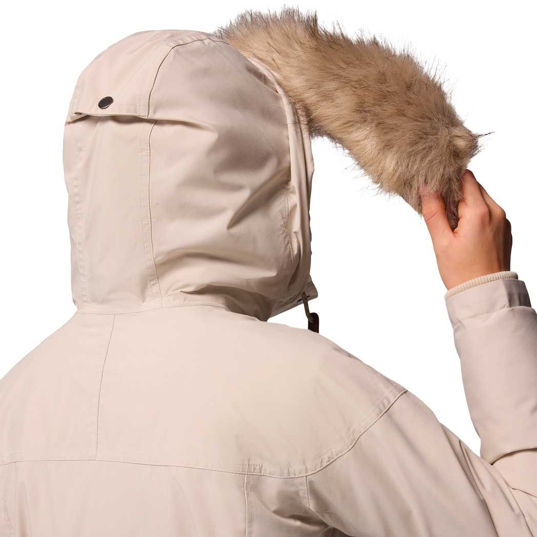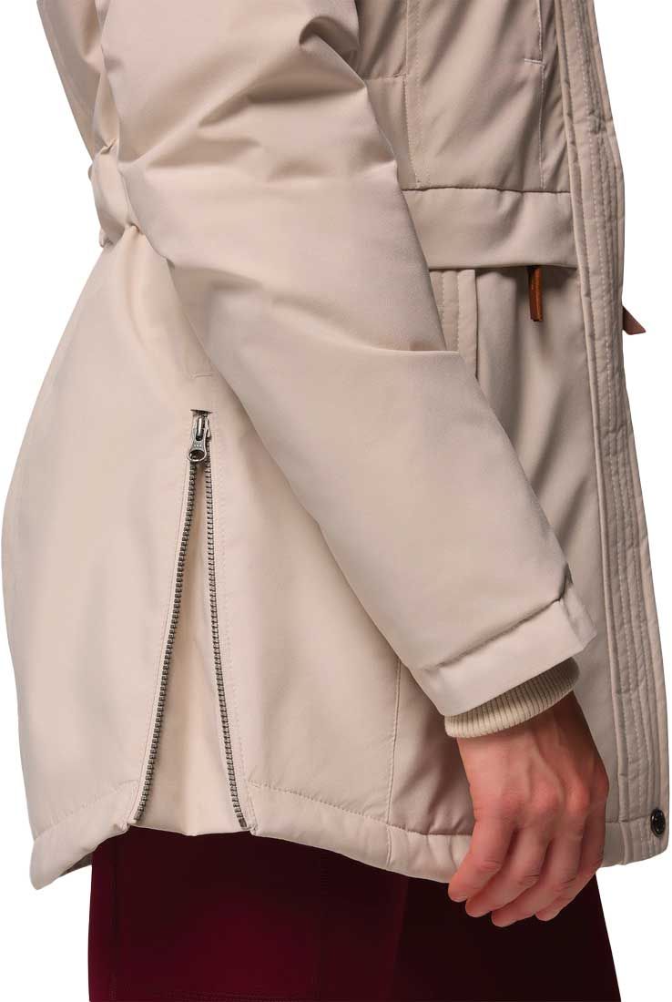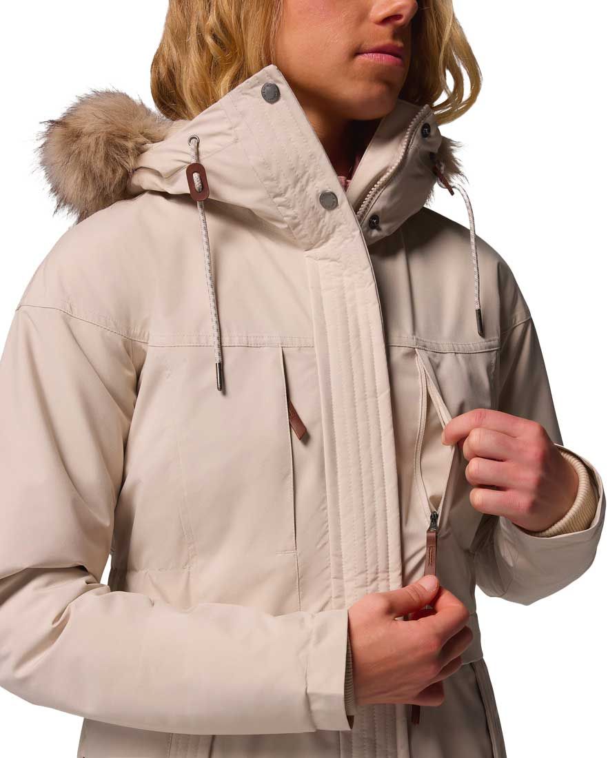 La parka mi-longue Columbia Payton Pass II Insulated Jacket pour femme combine isolation Thermarator™, doublure Omni-Heat™ Infinity et membrane Omni-Tech™ imperméable pour une protection complète contre le froid urbain. Capuche en fourrure synthétique amovible, taille réglable et poches zippées.