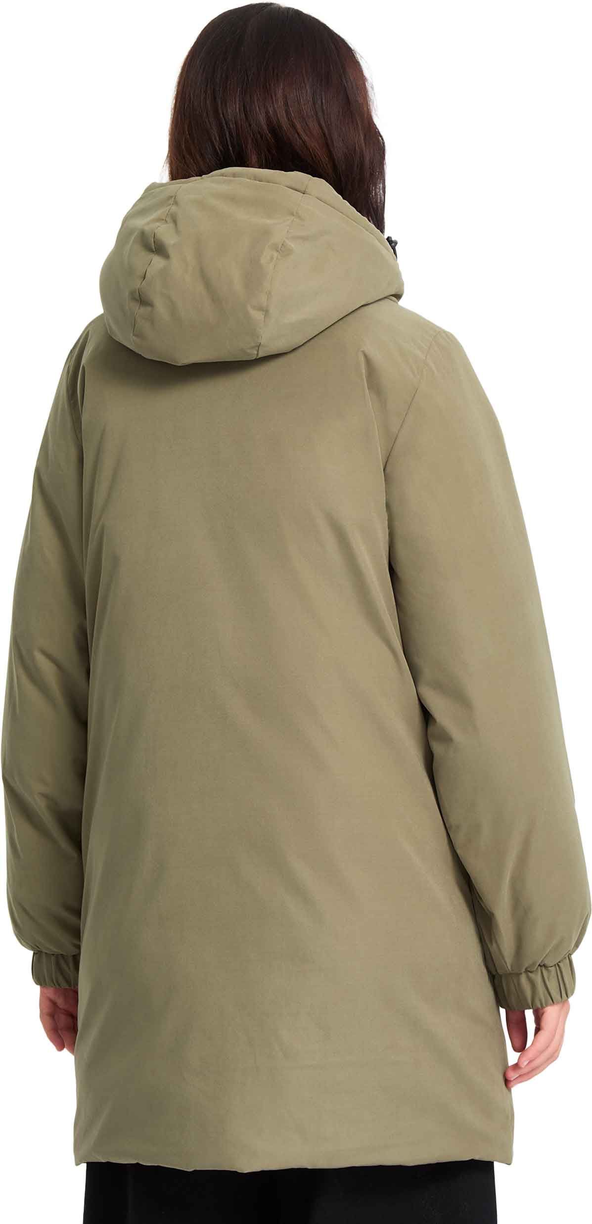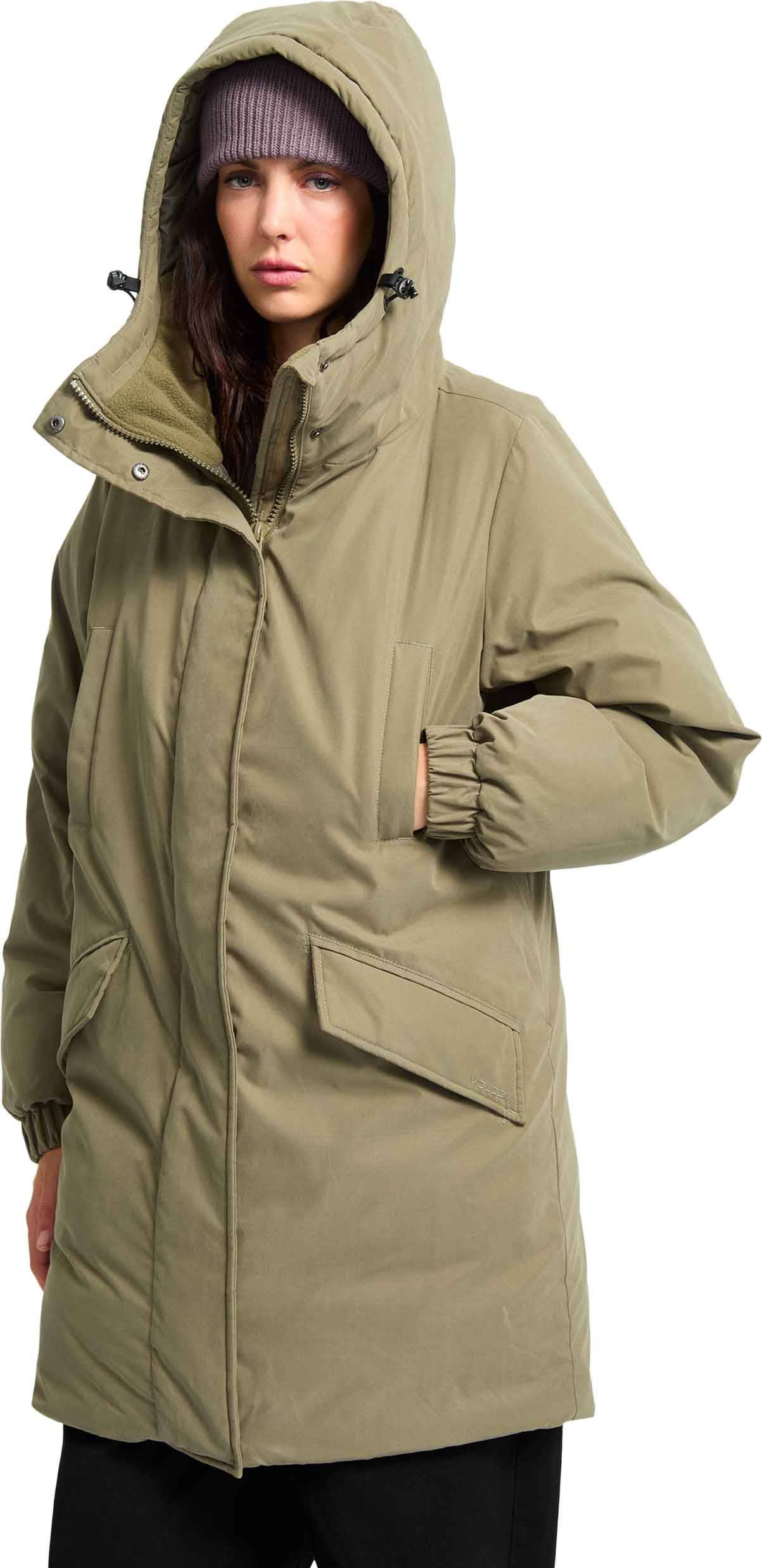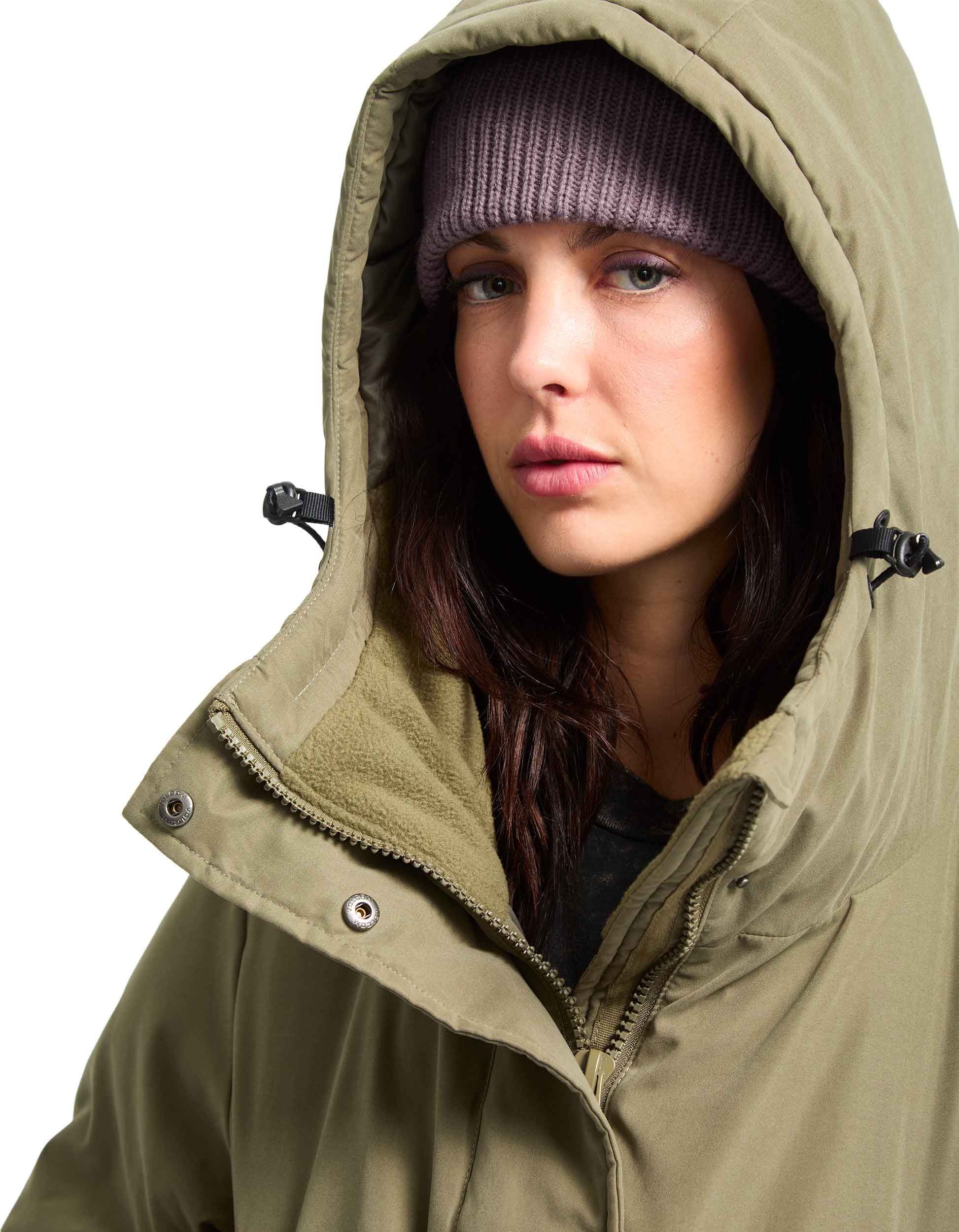 Veste Volcom Sleepi Puff Up Parka Wintermoss pour femme, chaude et déperlante Teflon EcoElite™ sans PFC, capuche fixe, coupe tendante, doublure isolante et multiples poches fonctionnelles.