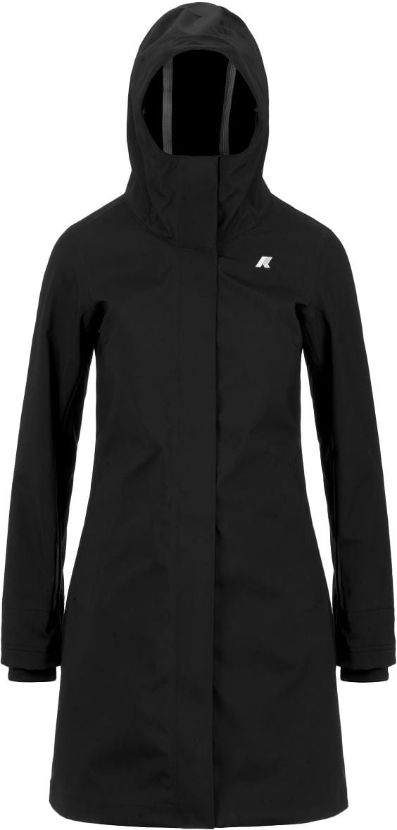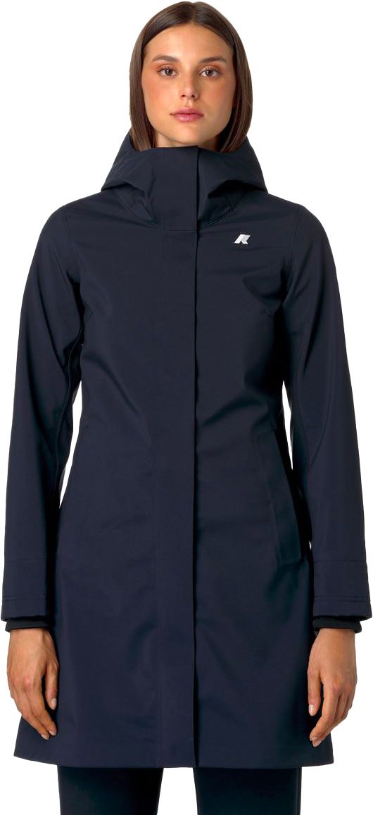 Parka longue Stephy Bonded Black Blue Depht K-Way femme, imperméable 3 couches avec membrane isolante, doublure polaire et coutures thermo-soudées. Coupe ajustée, taille réglable, protection urbaine chic.