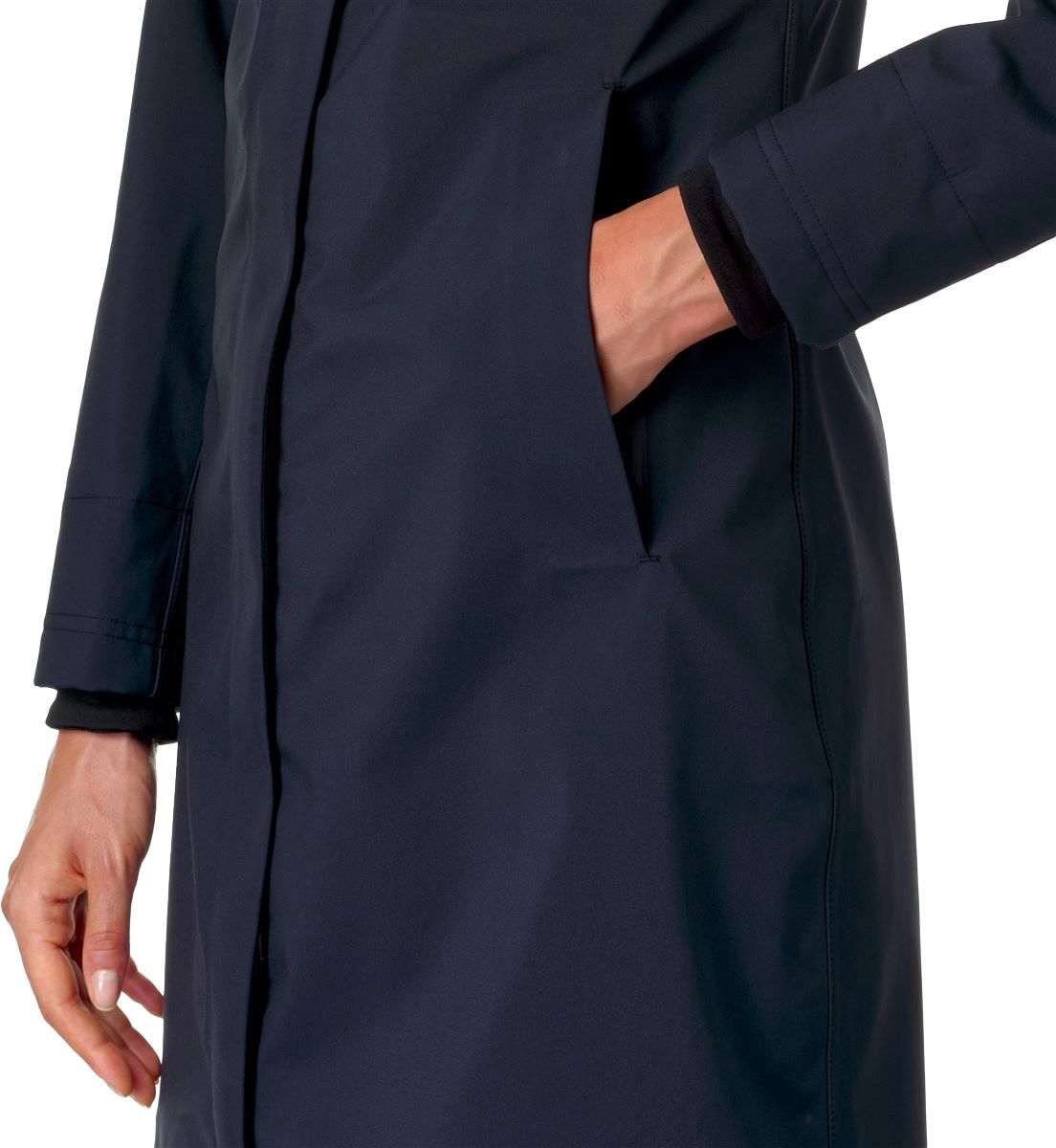 La parka longue Stephy Bonded Black Blue Depht pour femme incarne parfaitement l’esprit de la marque : une création à la fois élégante, citadine et protectrice. Pour garantir un confort optimal, ce modèle imperméable repose sur une construction en 3 couches techniques distinctes : une face externe étanche, une membrane isolante et une doublure polaire destinée à réchauffer même les plus sensibles au froid. Aucun élément extérieur ne pénètre à l’intérieur grâce aux coutures thermo-soudées. La silhouette est mise en valeur par une coupe longue et une taille ajustable, préservant l’élégance même par temps pluvieux.