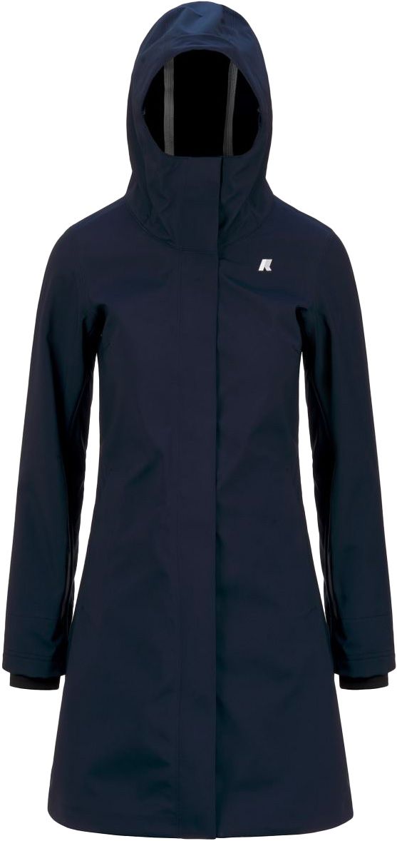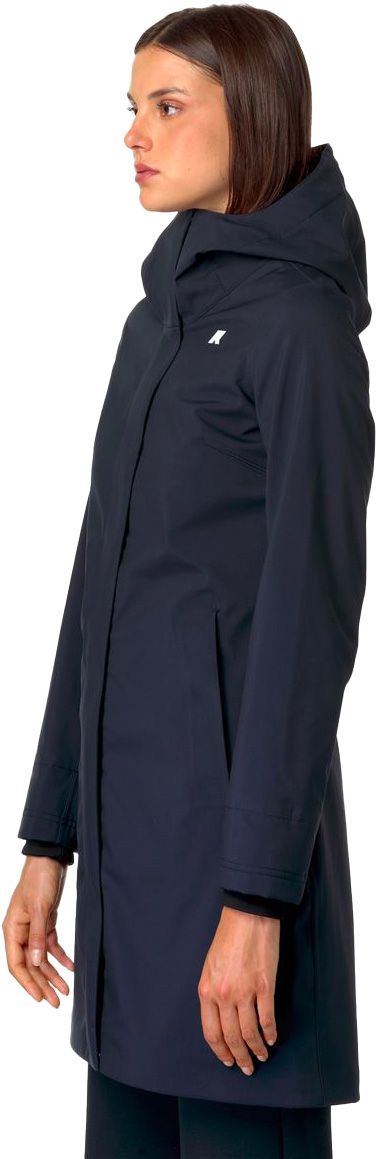 Parka longue Stephy Bonded K-Way pour femme, imperméable 3 couches avec coutures thermo-soudées, doublure polaire et taille ajustable pour élégance urbaine sous la pluie.