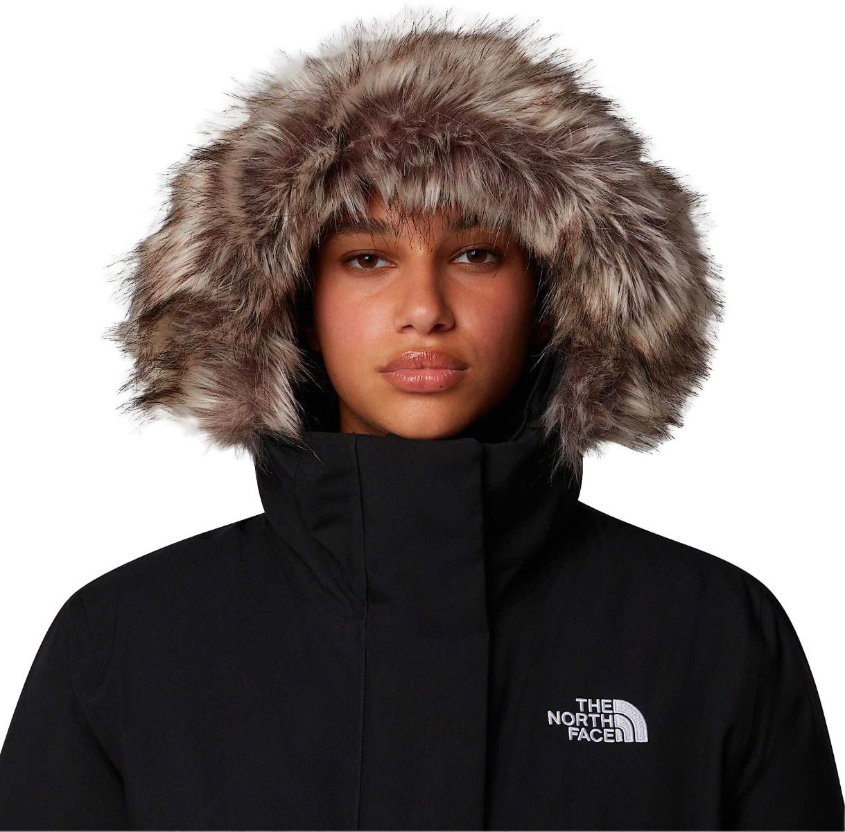 La parka W Arctic Parka TNF Black de The North Face est une veste imperméable et coupe-vent pour femme, équipée d’une membrane DryVent™ deux couches et isolée en duvet d’oie recyclé pour une chaleur optimale. Sa capuche amovible à fourrure synthétique et ses multiples poches complètent une protection hivernale urbaine.