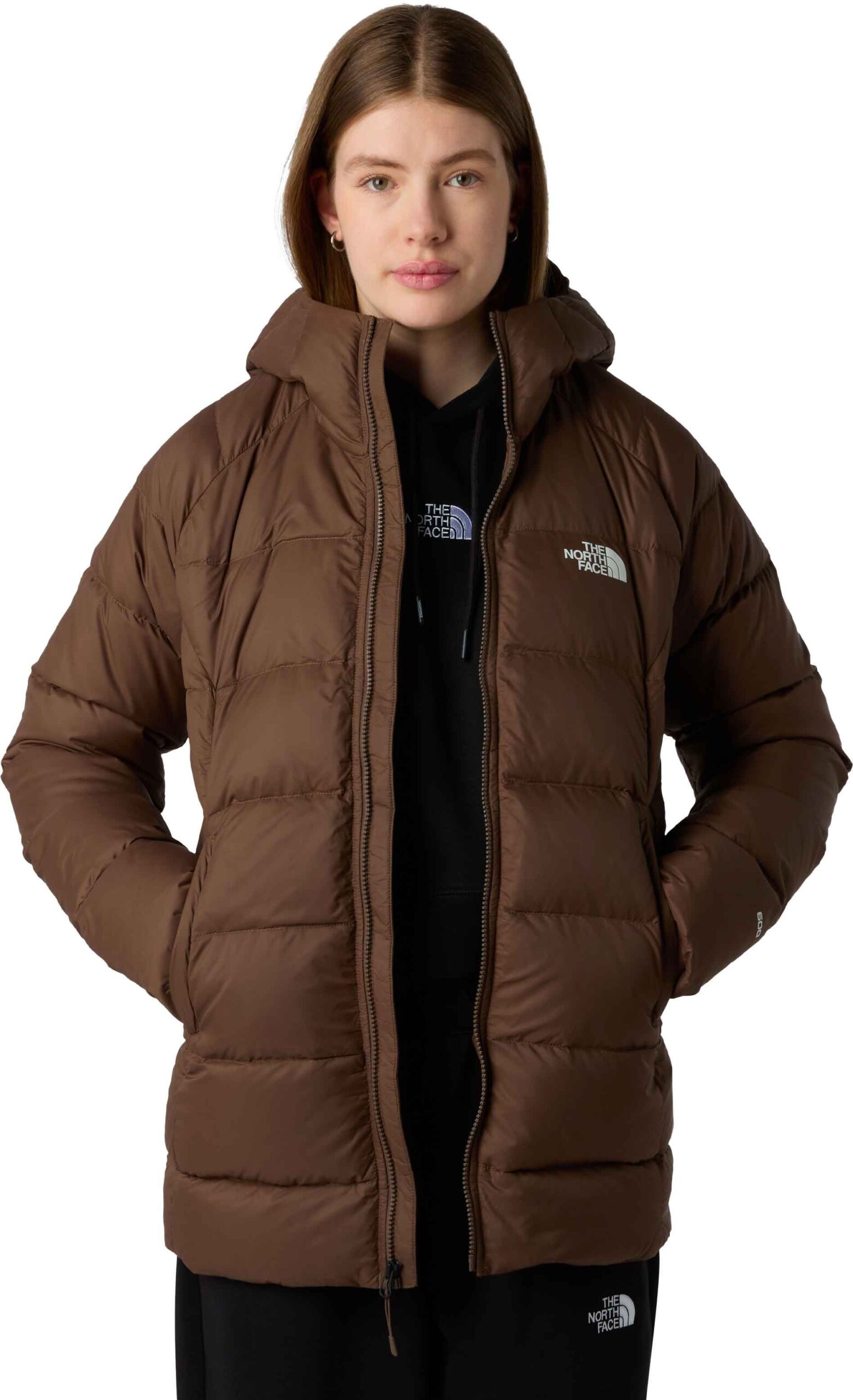 The North Face Hyalite Down Parka femme Smokey Brown allie duvet d’oie gonflant, coupe standard ajustée par poignets et ourlet élastiqués, pour une chaleur fiable sur sentiers ou en ville.