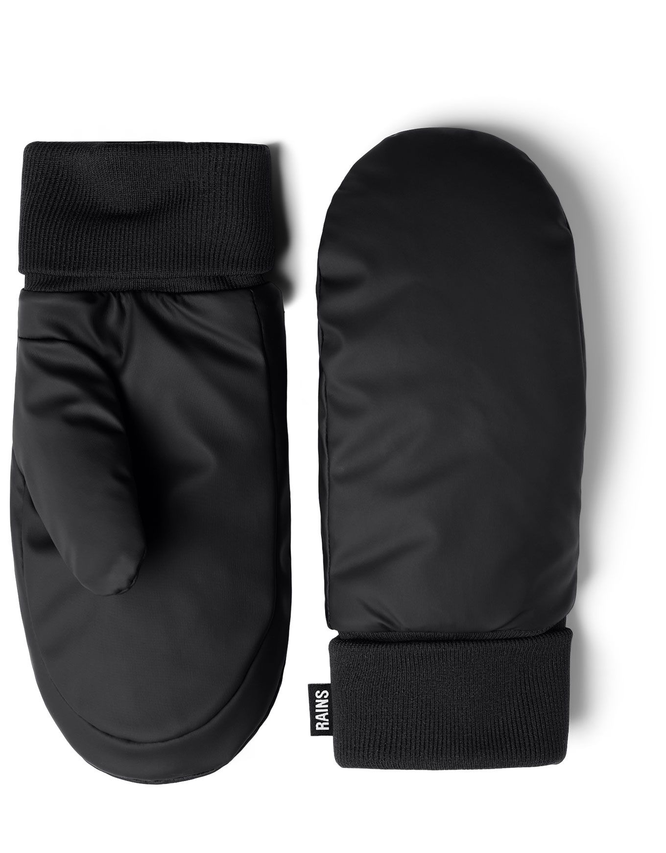 Moufles Rains Alta Puffer Mittens Black unisexe en PU imperméable et doublure polaire, gardant mains au chaud et au sec grâce aux poignets élastiques.