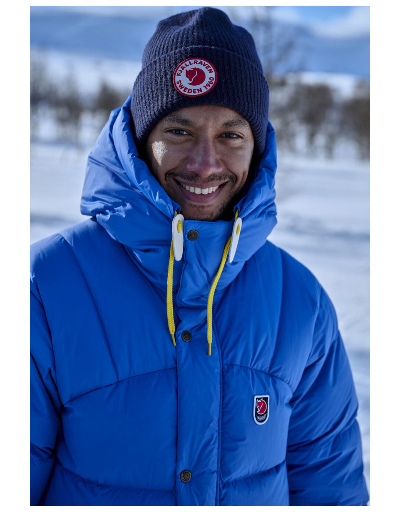 Vous ne pourrez bientôt plus vous passer du bonnet en laine 1960 Logo Dark Navy unisexe signé Fjällräven. Confectionné en tricot côtelé de laine de mérinos à double épaisseur, il sera votre allié indispensable durant les journées hivernales fraîches. Sa robustesse s’accompagne d’une douceur remarquable qui vous incitera à le garder constamment, y compris à l’intérieur. Sur le devant figure brodé l’emblématique logo de la marque Fjällräven.