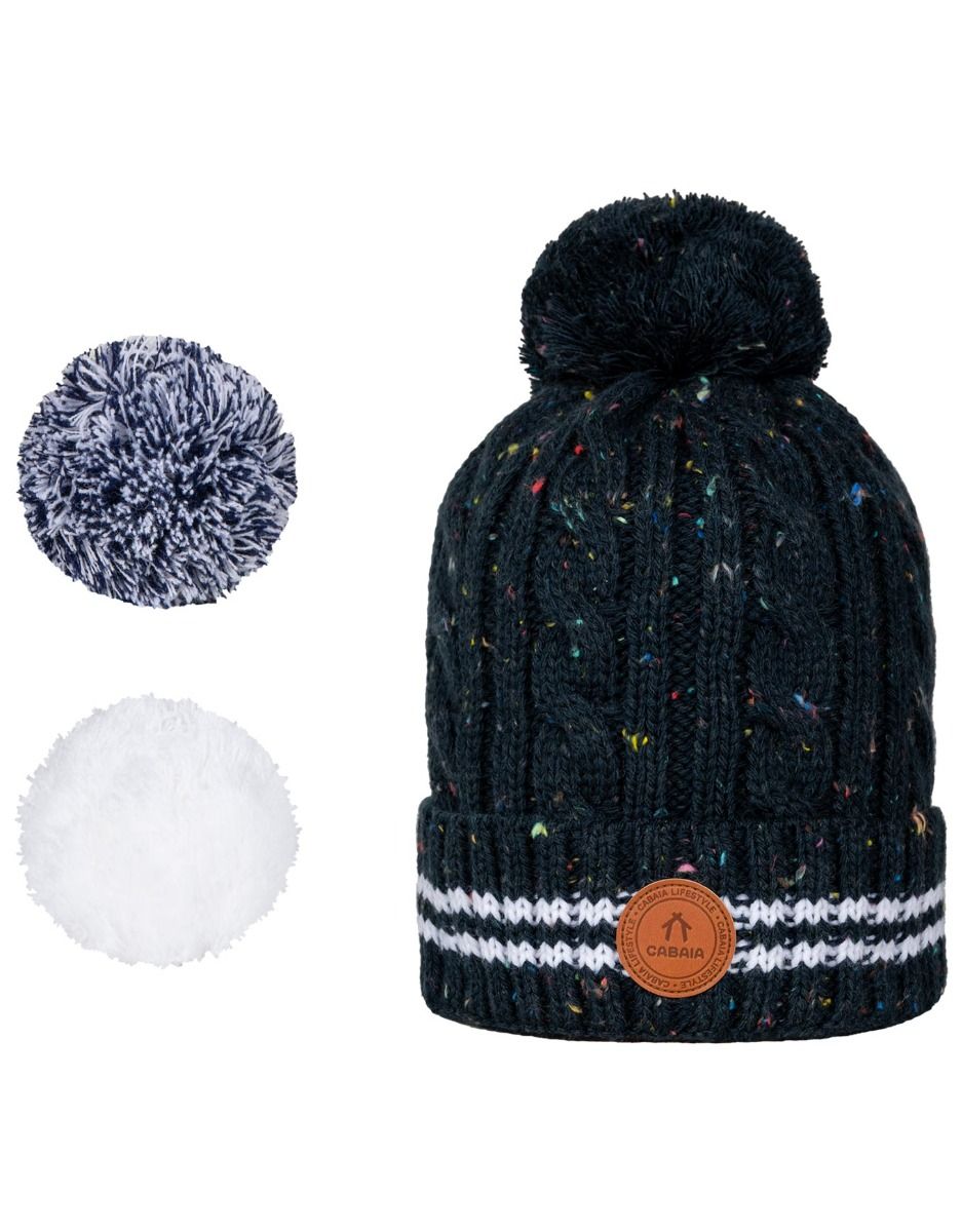 Le bonnet Creamy Gin de Cabaïa, doux et chaud, offre trois pompons interchangeables par aimant pour changer de style selon vos envies.