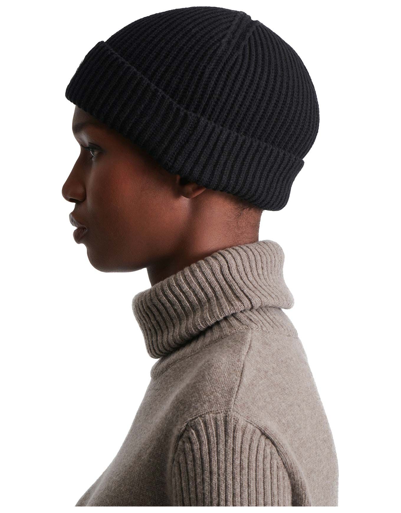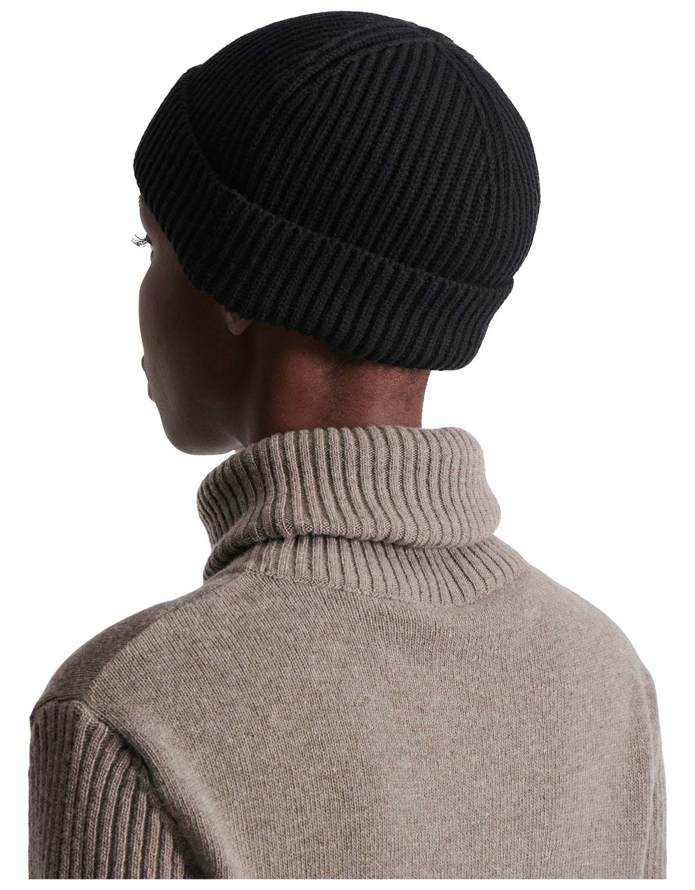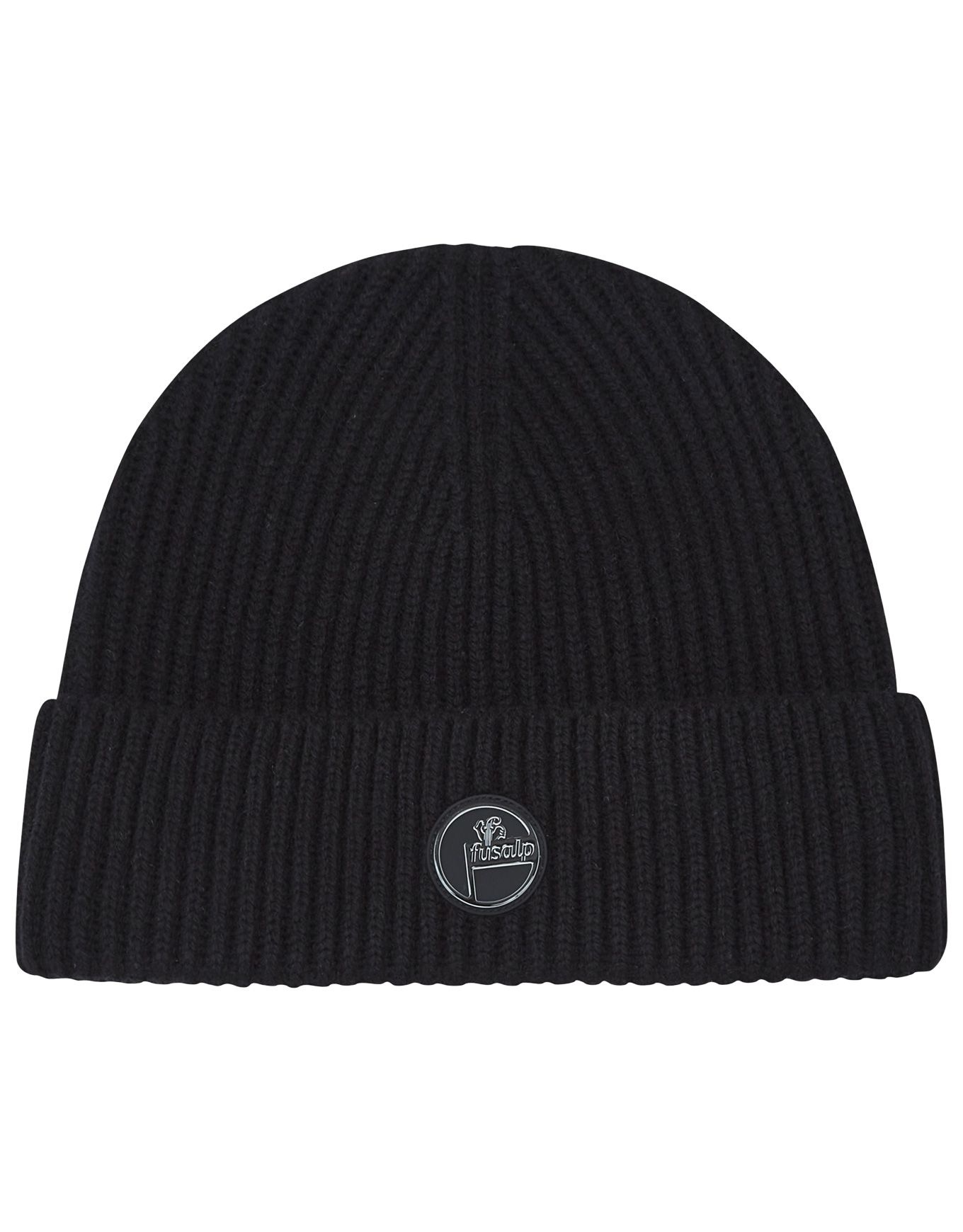 Bonnet Fusalp Nyx noir, tricoté en laine de mérinos côtelée respirante et à séchage rapide, arbore le badge Tech devant pour un style urbain ou de piste unisexe.