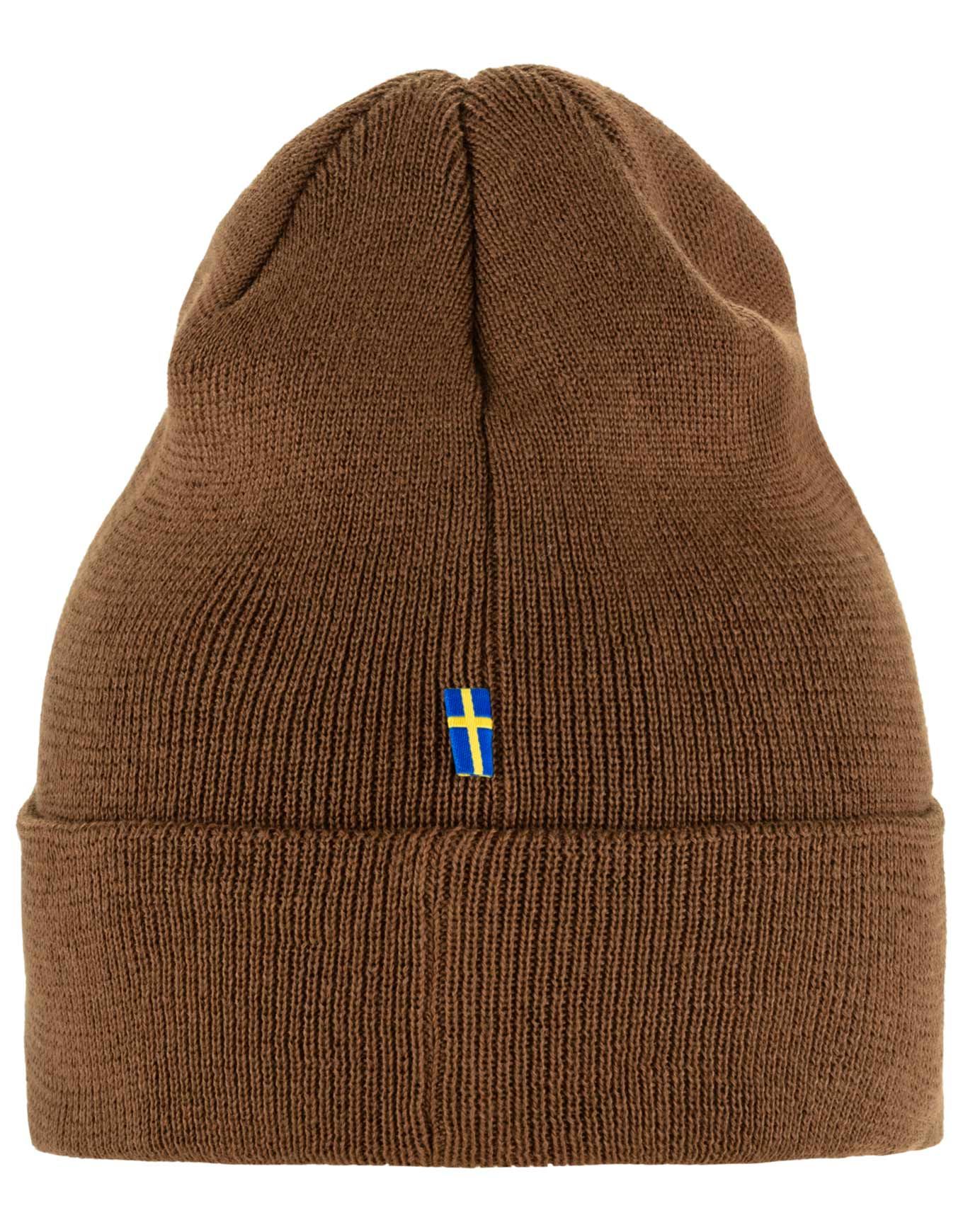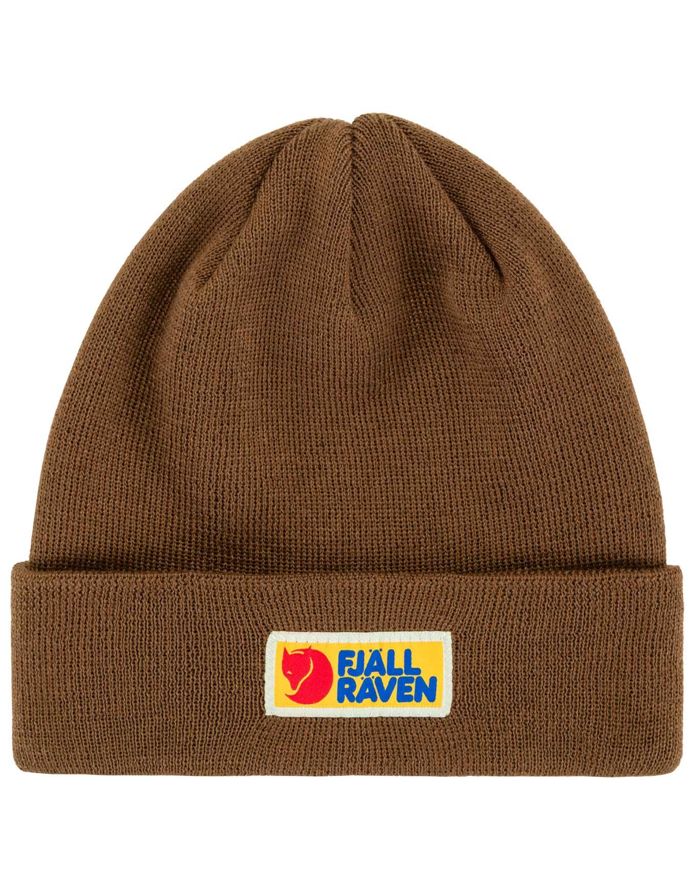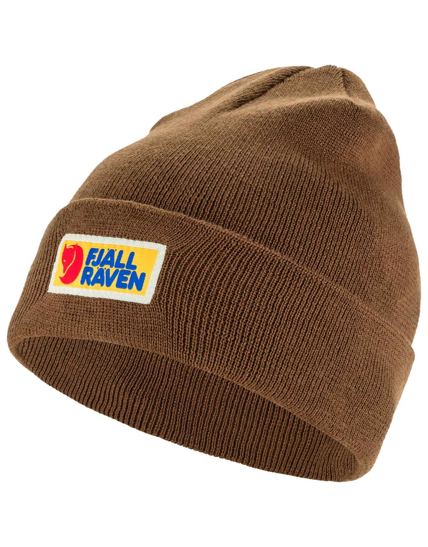 Le bonnet Fjällräven Vardag Classic Dark Oak, en polyester recyclé 100 % et tricot double épaisseur, assure chaleur et confort pour la montagne ou la ville par temps froid, avec le logo rétro Fjällräven des années 70.