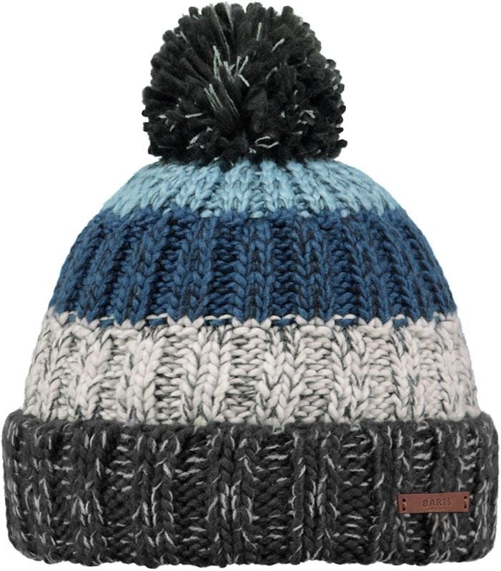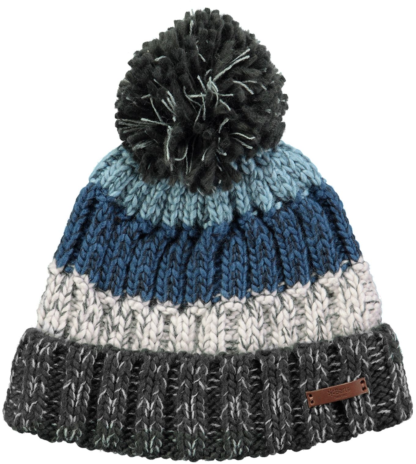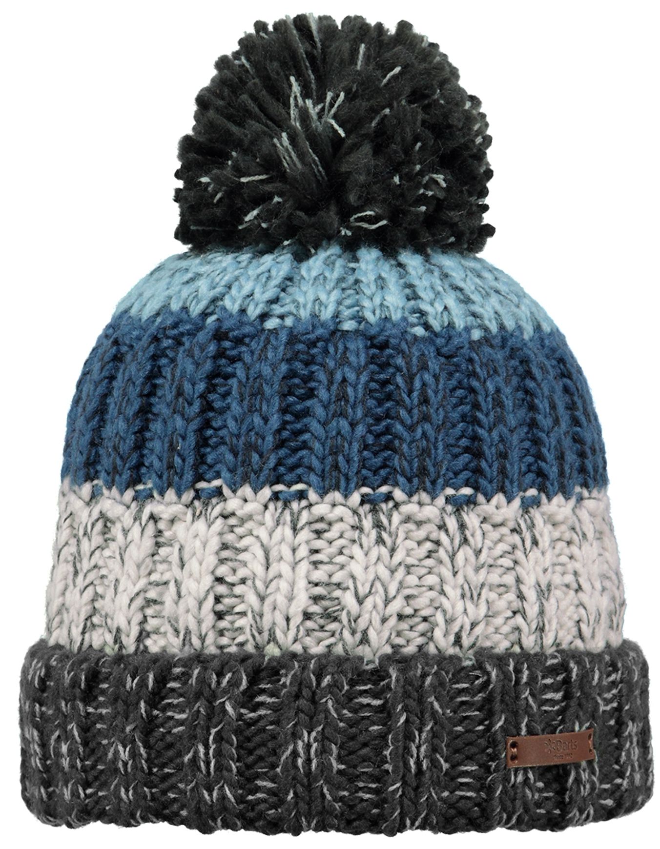 Barts Wilhelm Beanie Charcoal, bonnet homme en acrylique 100 % à large maille côtelée, doublure polyester coupe-vent, pompon classique, chaleur et style montagne-ville.