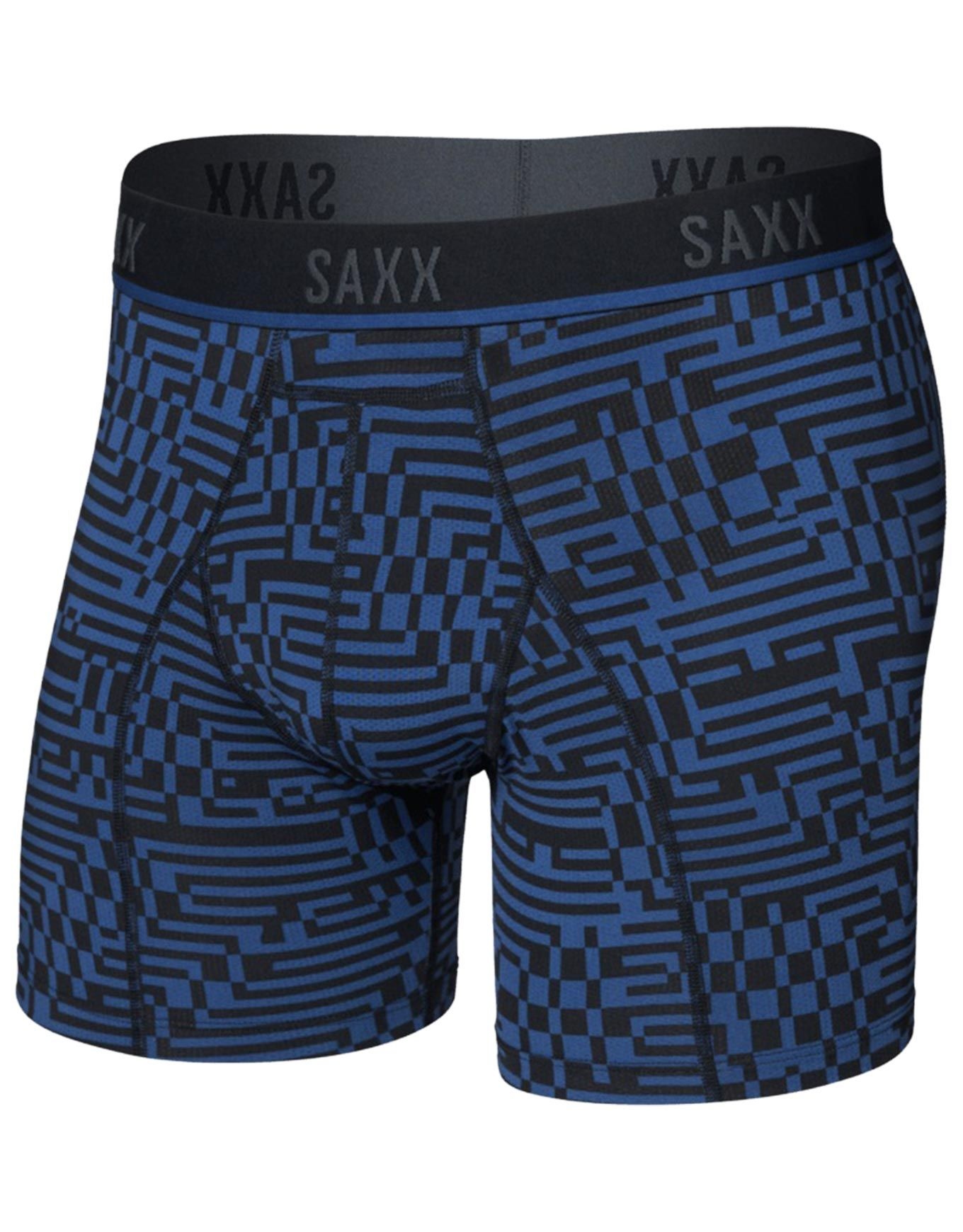 Le boxer Saxx Underwear Kinetic Light Compression Mesh Boxer Brief Maze Camo/Navy Dawn allie semi-compression légère et coupe anatomique avec poche Ballpark Pouch™ pour un maintien précis et zéro friction. Coutures plates Flat Out Seams™, stabilité renforcée, pensé pour le sport quotidien.