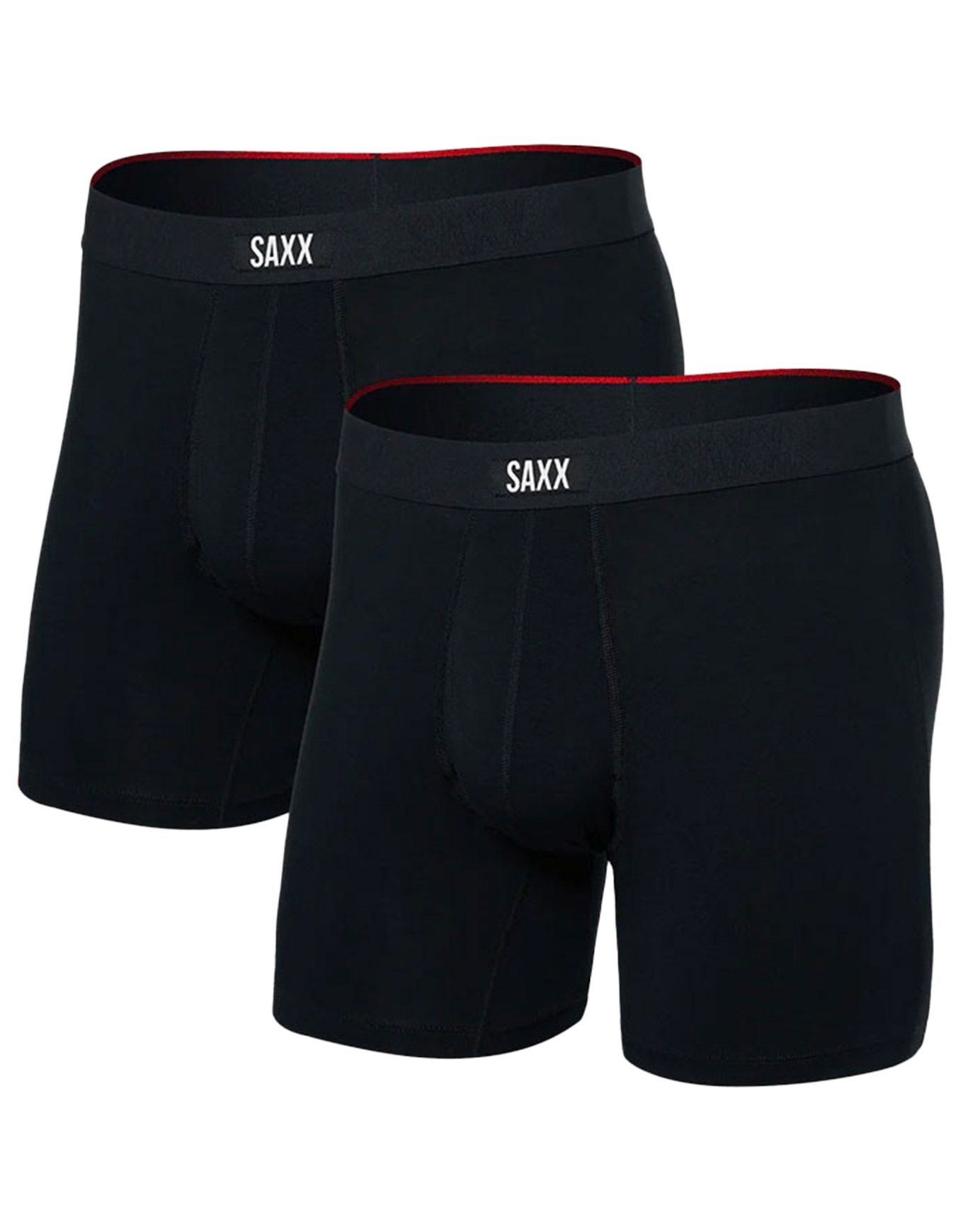 Boxers Saxx Vibe Xtra 2Pk Black pour homme en viscose élasthanne respirante, coupe ajustée, poche BallPark Pouch™, coutures plates Flat Out Seams™ et technologie Three-D Fit™ pour confort et maintien.