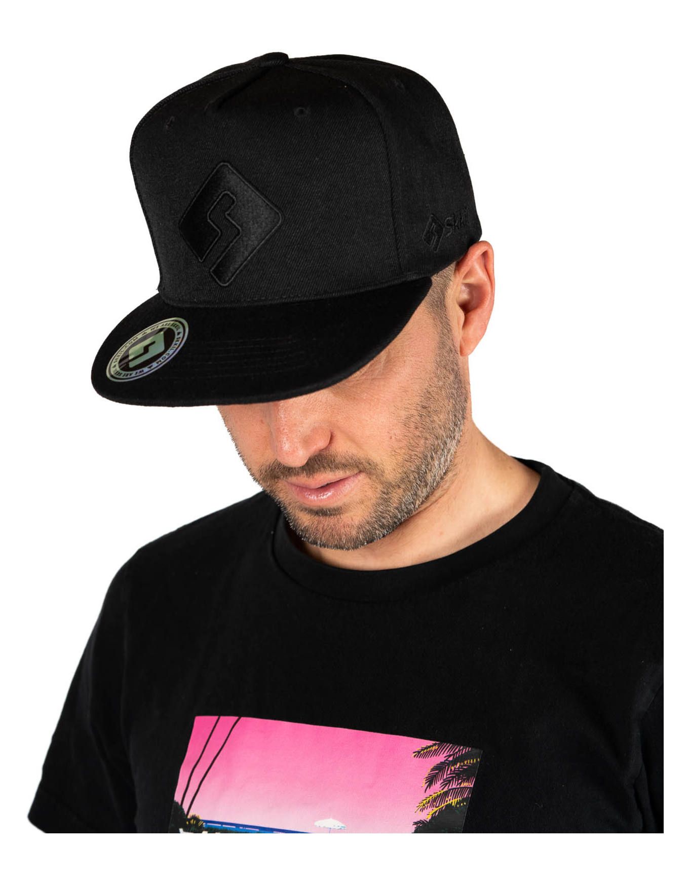 Cap 5 Panels Black Square Logo Black
