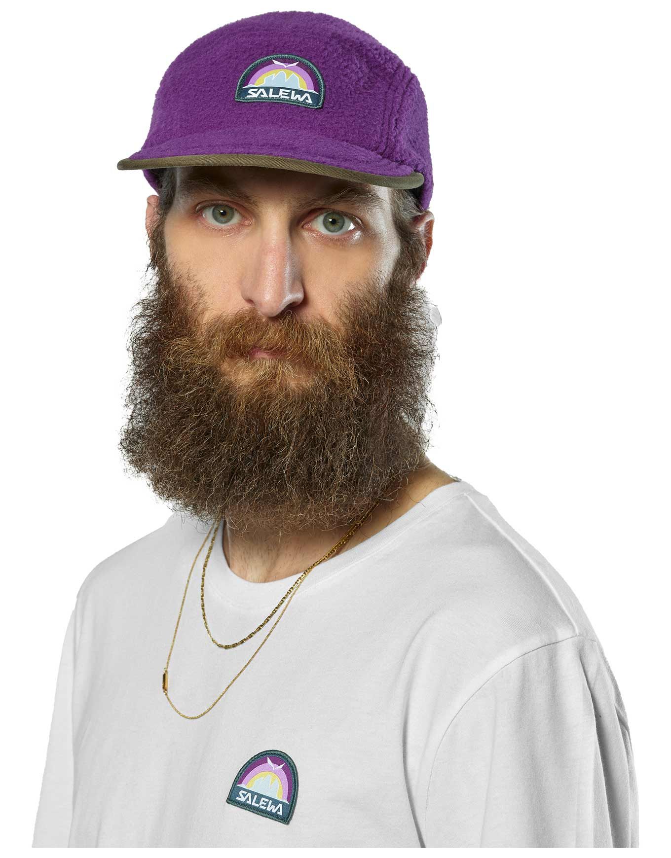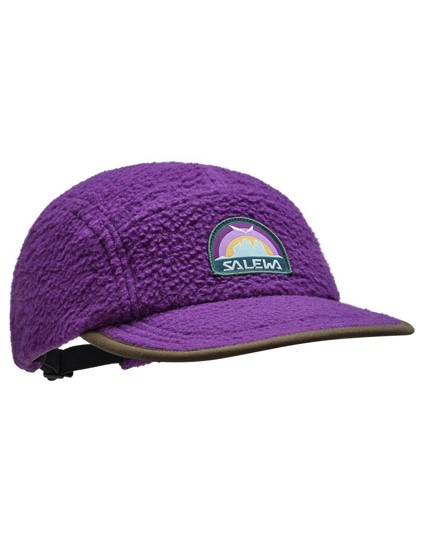 Casquette Salewa Eagle Anniversary Retro Cap Plum en polaire 100 % polyester recyclé, édition 90 ans, chaleur et confort ajustables pour homme et femme en montagne ou ville.