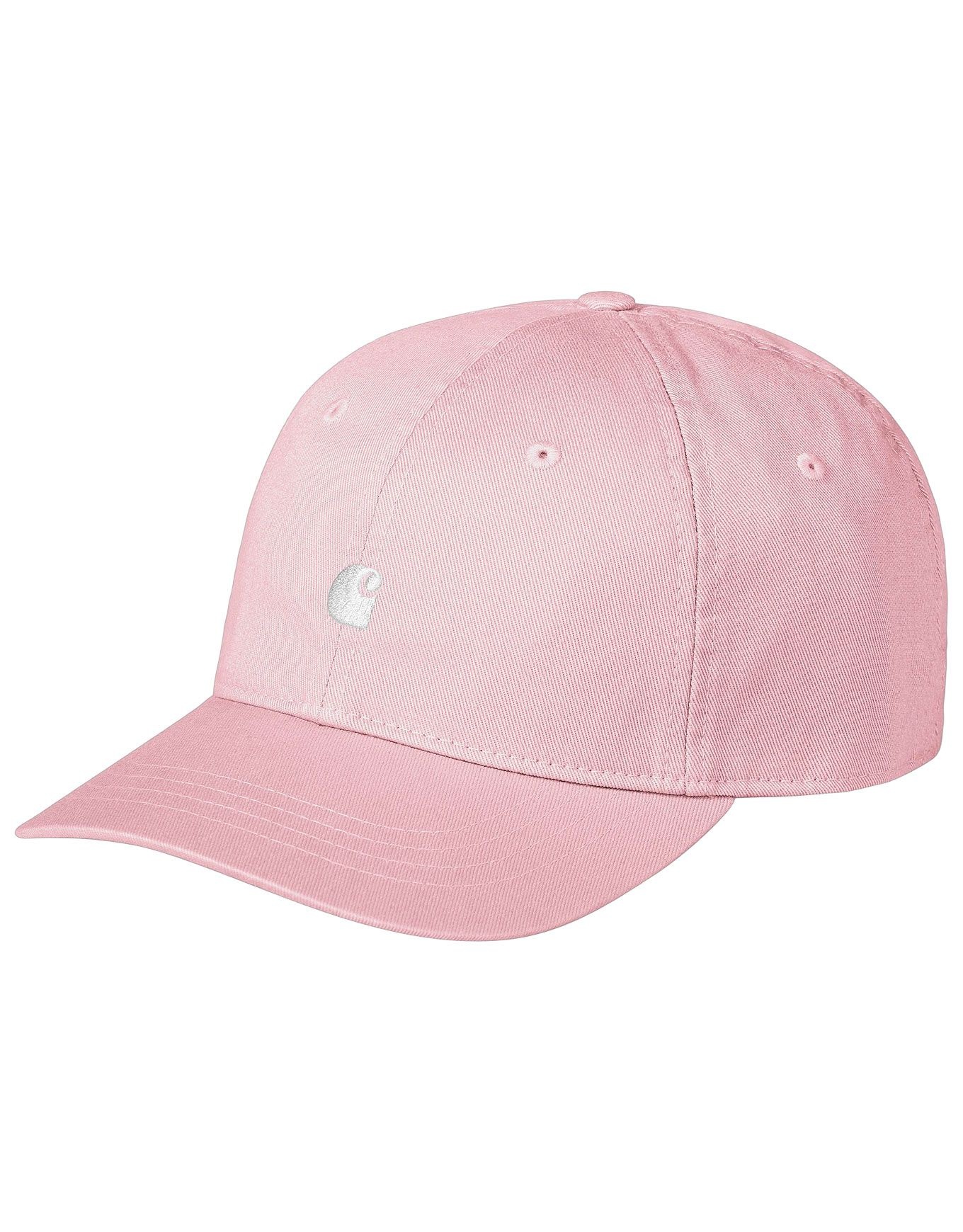 Casquette Carhartt WIP Madison Logo Cap Pink Fog White en twill de coton 6 panneaux, visière courbée et look baseball intemporel.